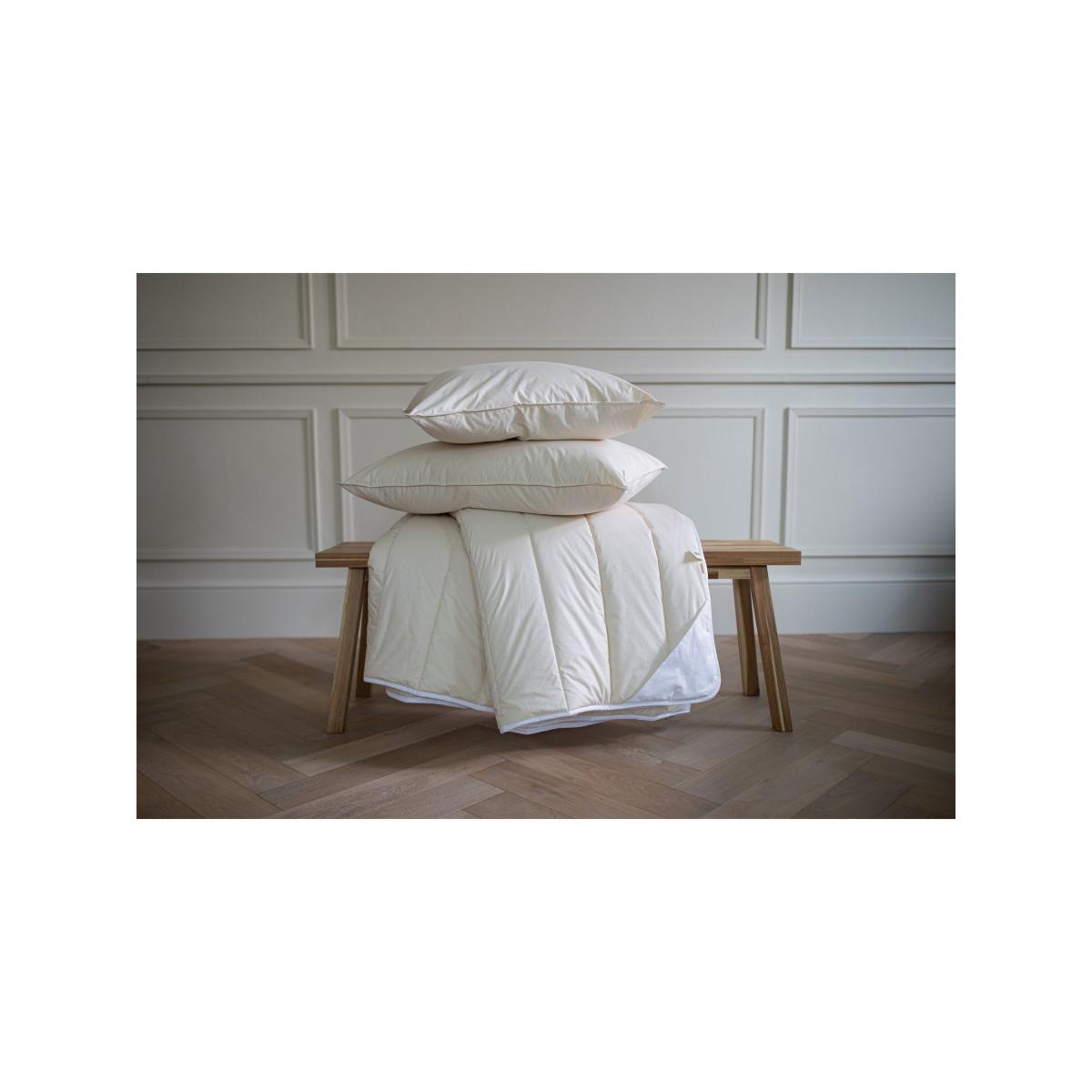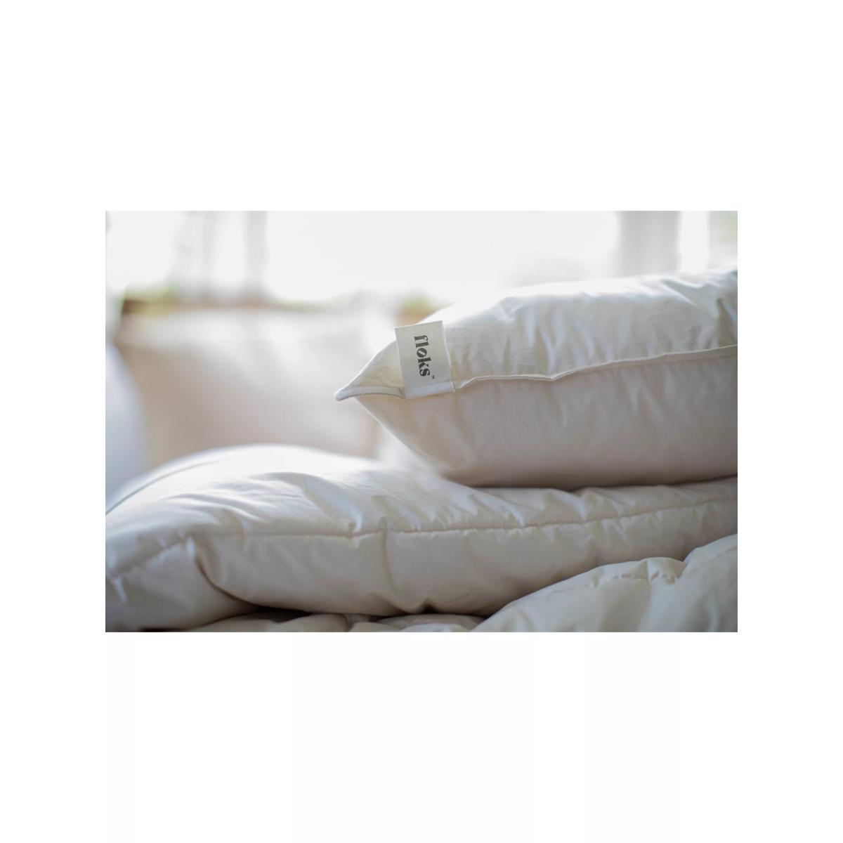 The crème de la crème of bedding, this Floks luxury, medium firm pillow is handcrafted in Yorkshire using finely combed, 100% traceable British Cheviot wool and certified organic cotton. Thermo-regulating and breathable, the pillow allows moisture and air to flow through it making it perfect for people with conditions such as asthma and eczema. Wool is completely sustainable and biodegradable which means that it’s good for the planet as well as helping you sleep your best sleep. This luxury pillow comes in a 100% recycled cotton duffle bag perfect for storage (or dirty laundry). Features: One natural, sustainable, hypoallergenic and thermo-regulating pillow 100% British, traceable wool cared for from grassland to dreamland Medium firmness – natural and subtle memory, offering gentle support Luxurious, certified organic cotton Designed, made and finished in the UK Ideal for those with asthma and allergies