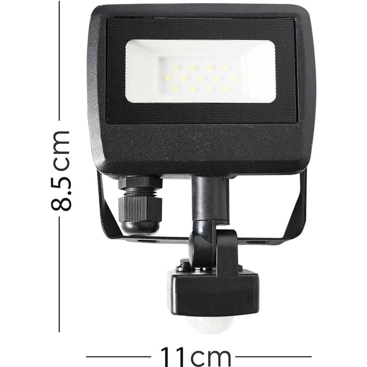 Introducing the 10W 6500. K LED Slimline IP65 Black PIR Floodlight with Samsung Technology. This sleek and stylish floodlight is perfect for any home or business. The Samsung technology provides superior quality lighting, while the slimline design ensures that it is unobtrusive and easy to install. It is a PIR floodlight and the IP65 rating means that it is outdoor and waterproof, so you can feel confident that your property is well-lit and secure.