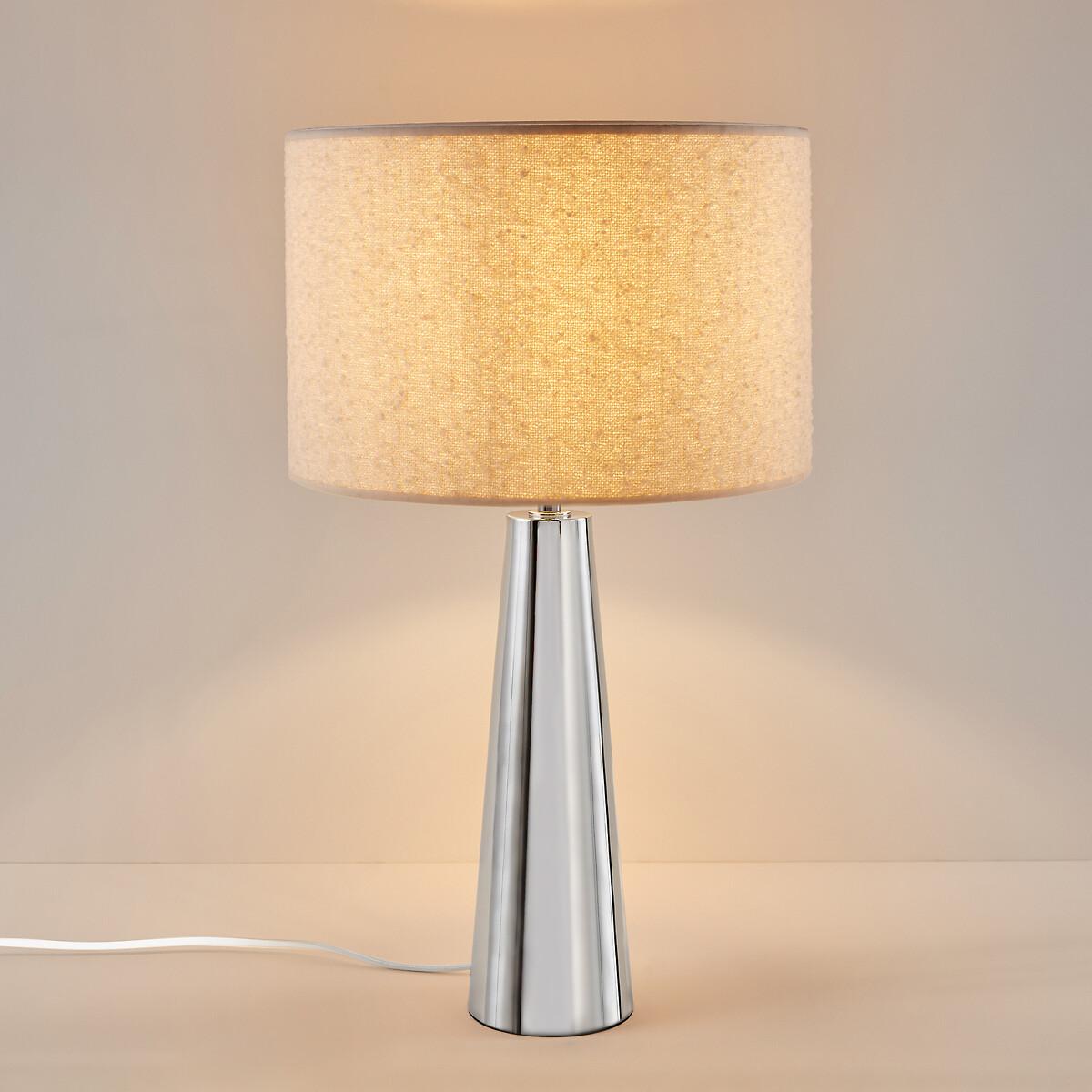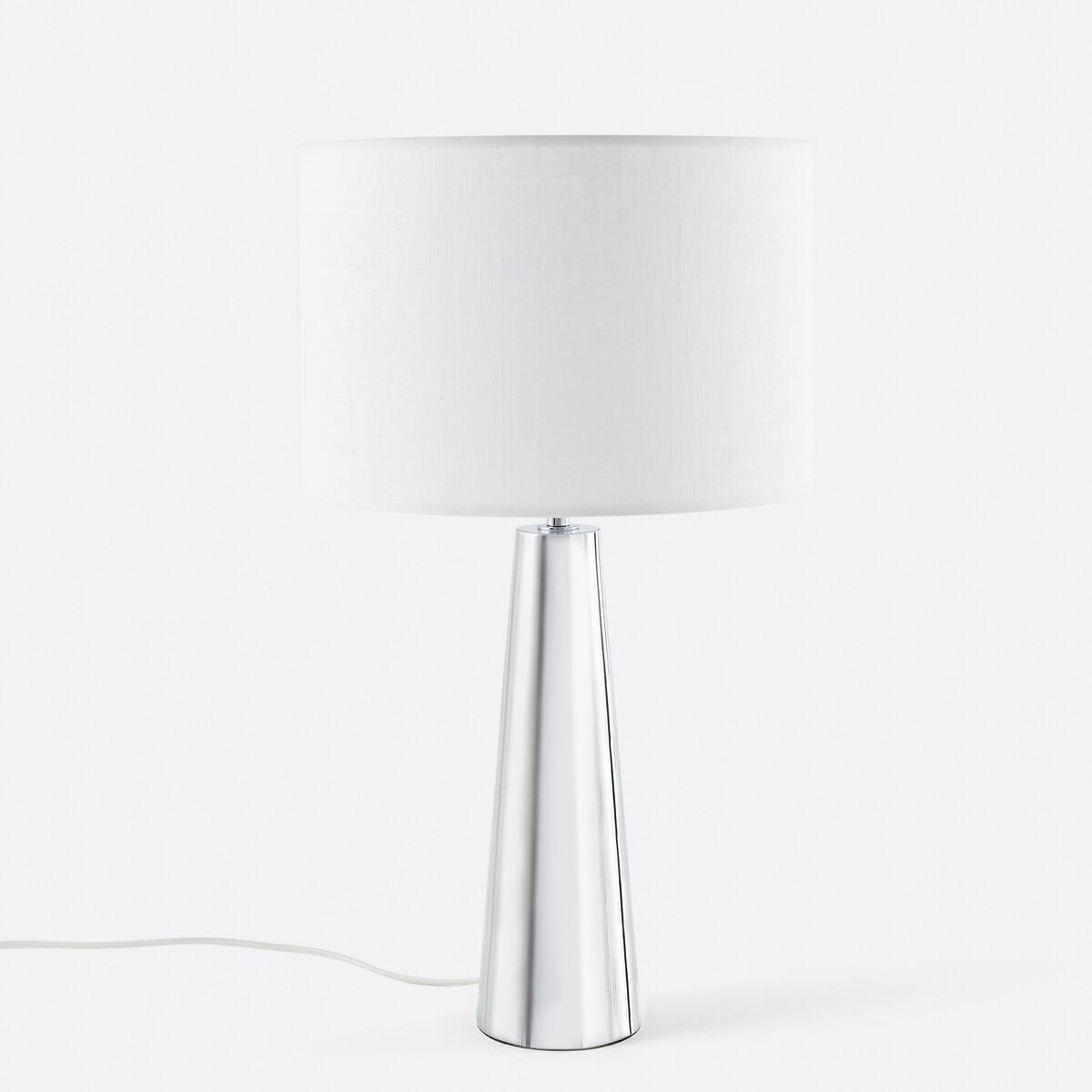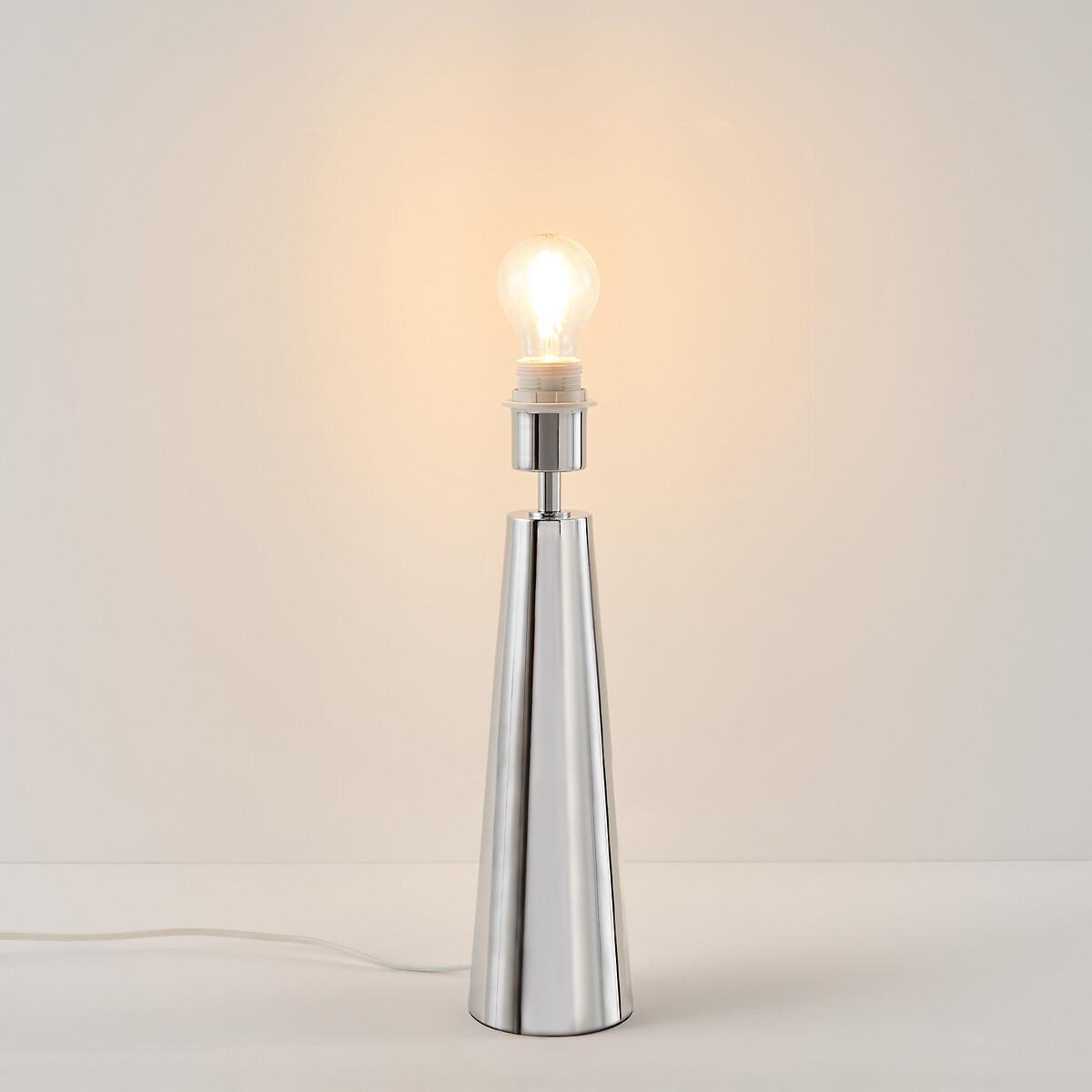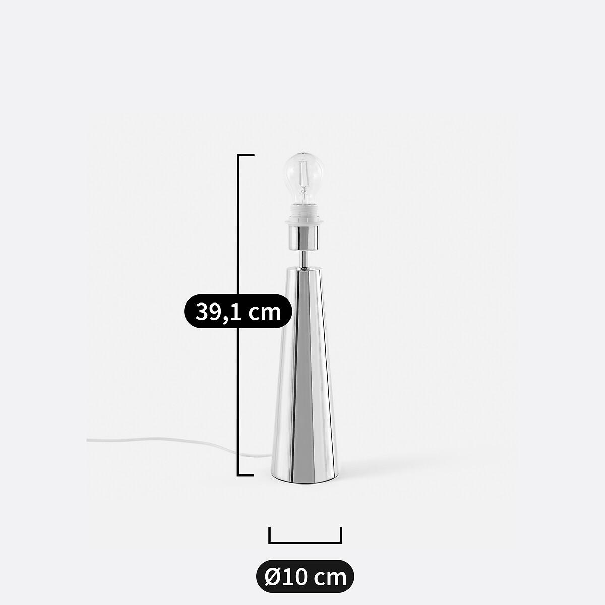 Conical design and chromed metal : the perfect duo for the Thia Floor Lamp base. Modern simplicity with a touch of sophistication. Customise with the Lampshade of your choice, to create a Floor Lamp that suits you and your home perfectly. Product Details • Iron floor lamp in chrome finish • E27 socket for LED bulb of 8W max (not included) • Lampshade not supplied, sold separately on site. Dimensions • Diameter: 5/10cm • Total Height: 39.1cm. Dimensions and weight of parcel • 1 parcel • L15 x H46 x D15cm. 1.83kg.