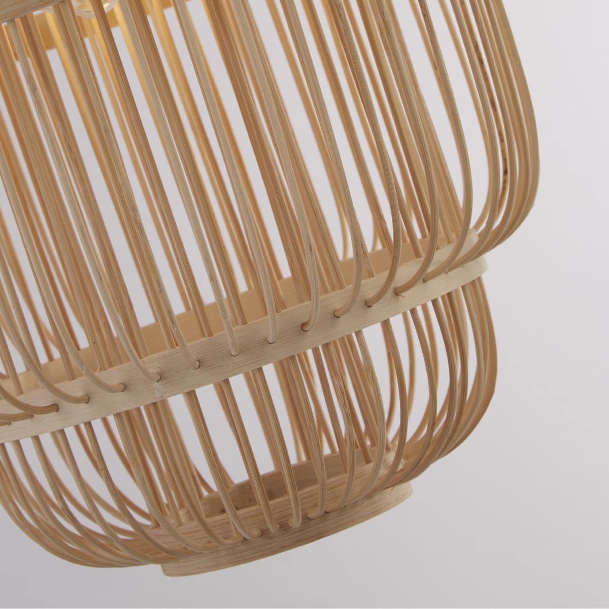 I really like this floor lamp with its bamboo frame shade - it adds a touch of natural warmth and texture to a space. It works particularly well in interiors with a boho, Scandinavian, or coastal vibe, where organic materials and relaxed atmospheres are key. The black base keeps it grounded and versatile, making it easy to incorporate into both neutral and darker colour schemes. Practical styling tips include placing it next to a cosy armchair or sofa for functional ambient light, or using it as a statement piece in a corner to create subtle visual interest. Its clean lines and natural material make it an adaptable piece that brings a relaxed yet refined feel to many different rooms.