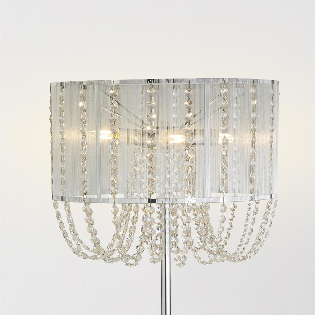 Add a glamorous finish to any living space with this floor lamp. The chrome base is topped with a fabric wrap shade adorned with cascading glass drops to create a highly elegant floor to elevate any home.