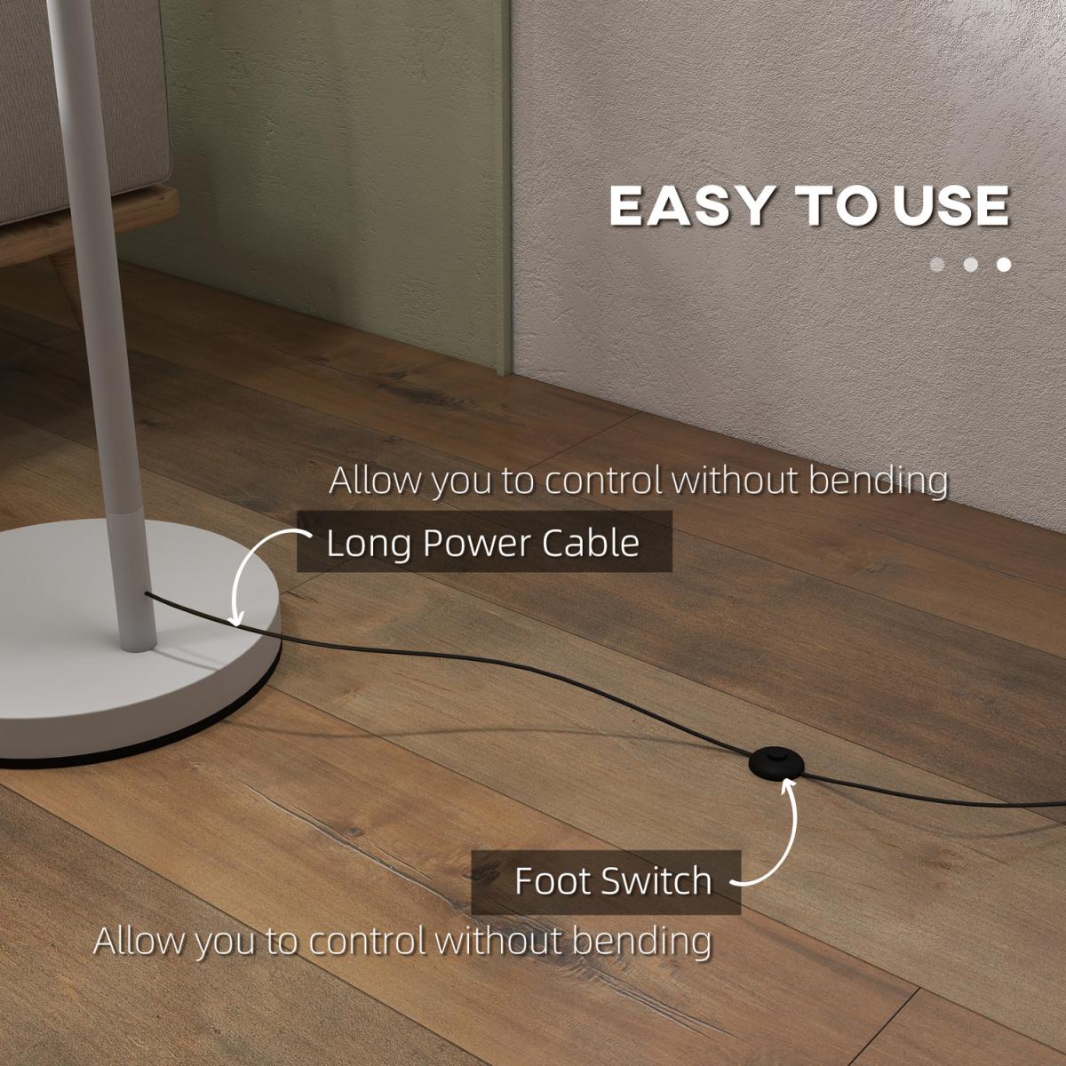 Something retro to illuminate your home Easily done with this HOMCOM floor standard lamp. The design blends together a tall pole with a linen-feel fabric lampshade for that old-school charm. The lamp moves left and right, a total of 350 it's easy to illuminate the area you want. The pole, made from metal is strong, with a round base for balance. It has a foot switch so you can turn it on and off easily.