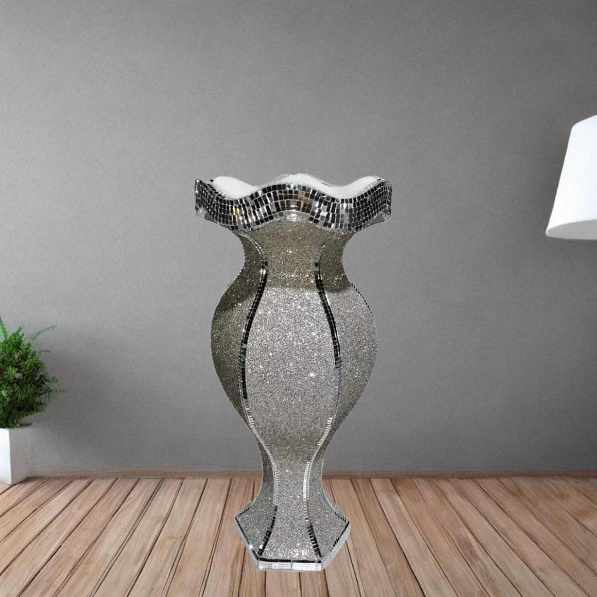 Floor Vase Large Crushed Diamond Crystal Mirrored Silver - Silver