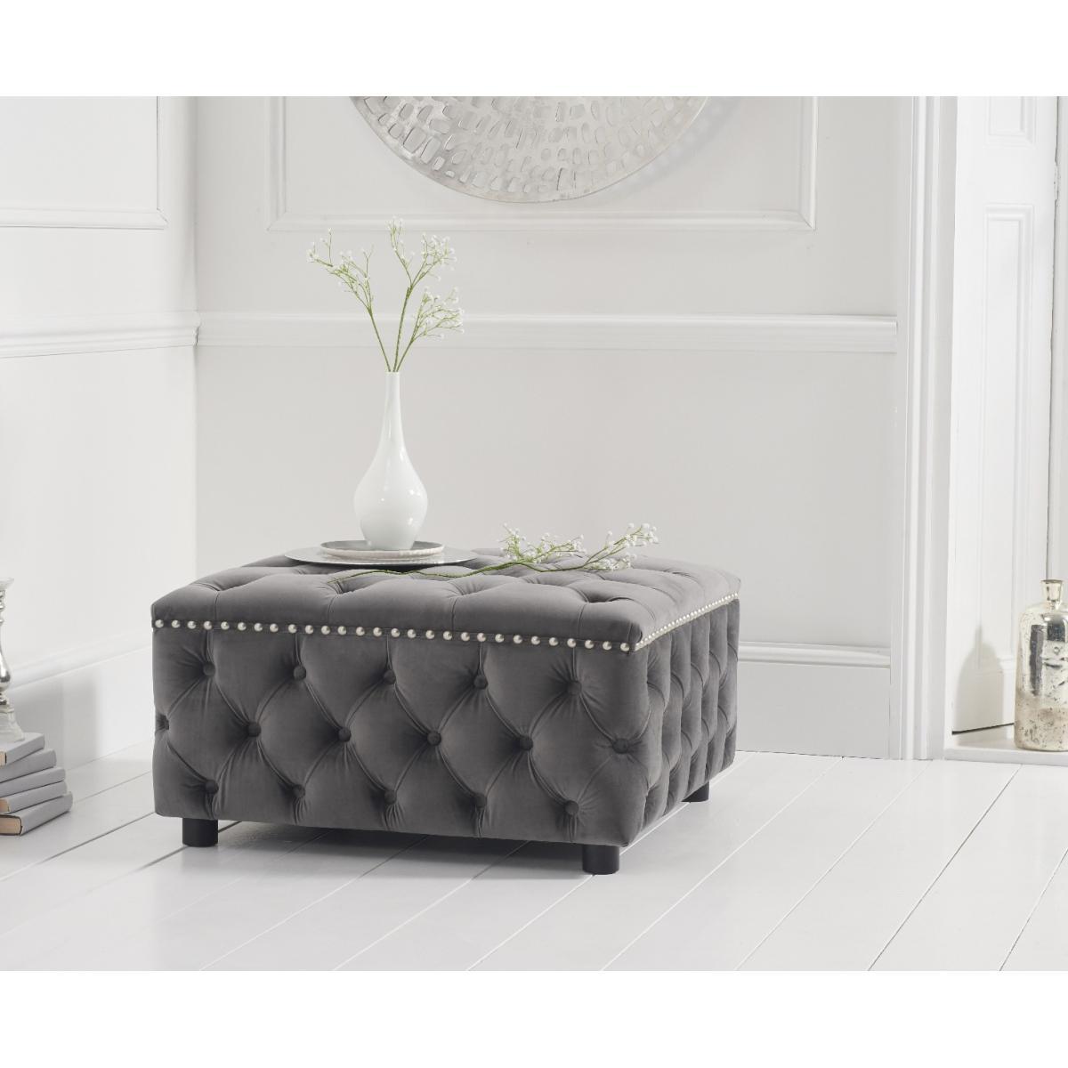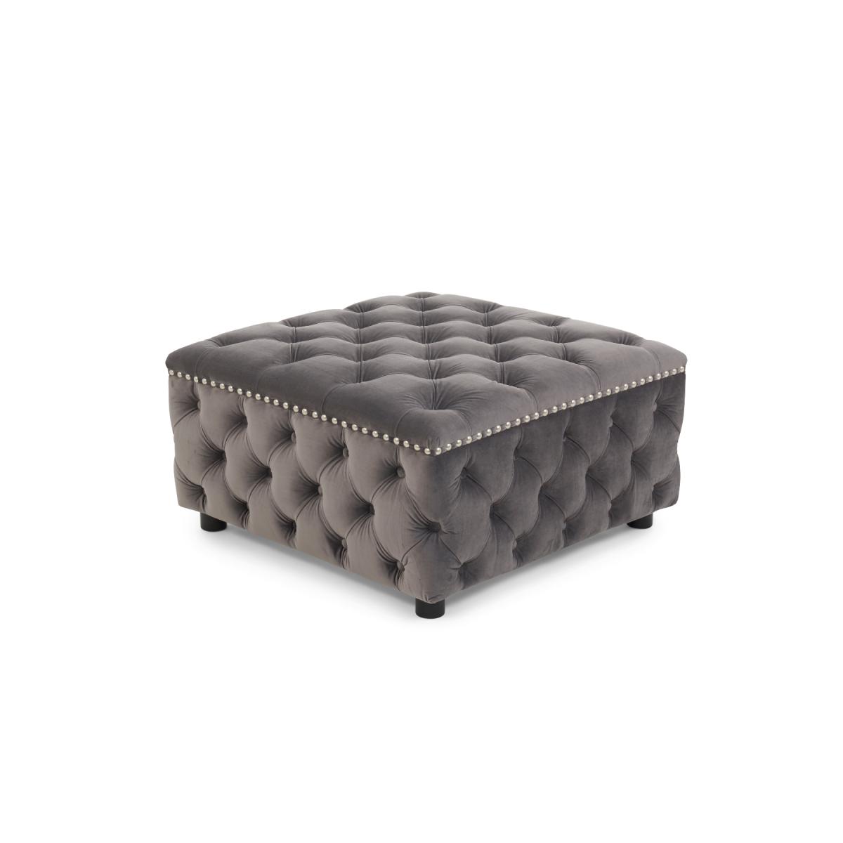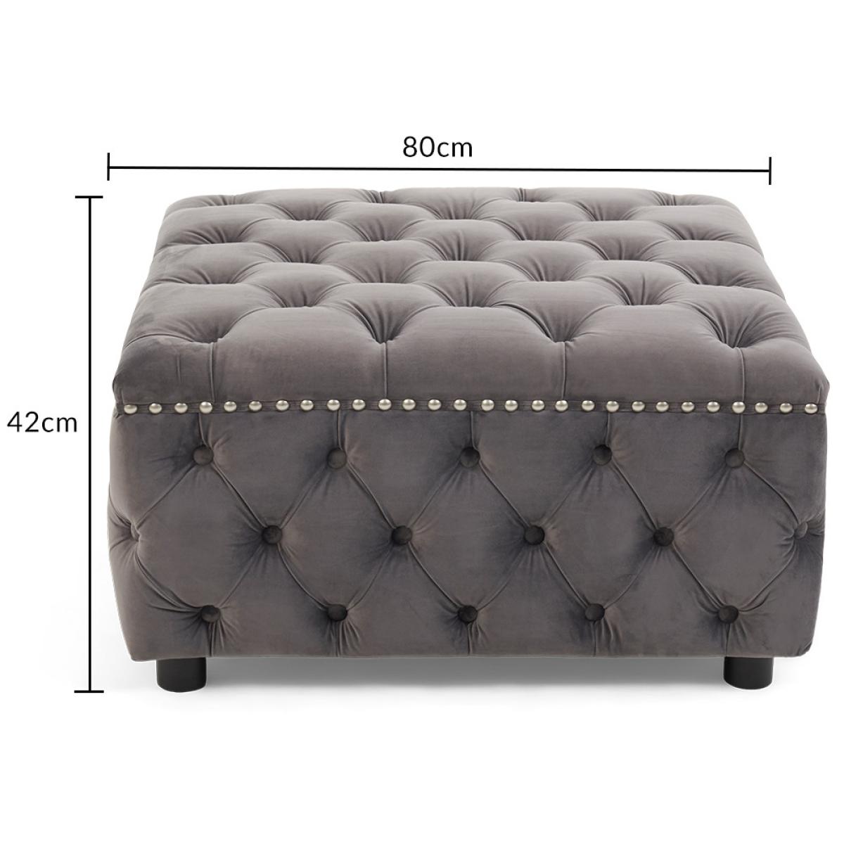 So chic for an additional touch of elegance and lush texture in your living room, the Flora Square Footstool in our gorgeous lush Grey Velvet upholstery boasts an all over deep-buttoned design and a contemporary metal studded trim. With a flat and comfortably plump top, softly rounded edges and short, sturdy solid wood legs. Lush velvet adds a luxurious and super-soft touch Contemporary metal studs and a classic deep-buttoned design make for a completely unique piece. Low to the floor for effortless leg-resting. Rounded velvet edges soften its square shape We Love: combining with our Grey Velvet Flora Chaise Sofa (right or left facing) to create the perfect living room set-up. Also available in: Green Velvet (Round and Square), Blue Velvet (Round and Square), Grey Linen (Round and Square), Cream Linen (Round and Square).