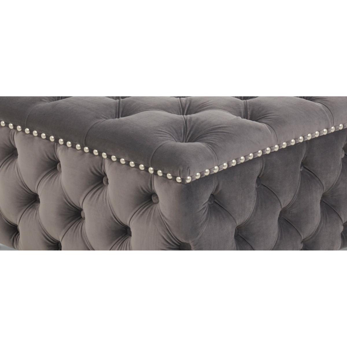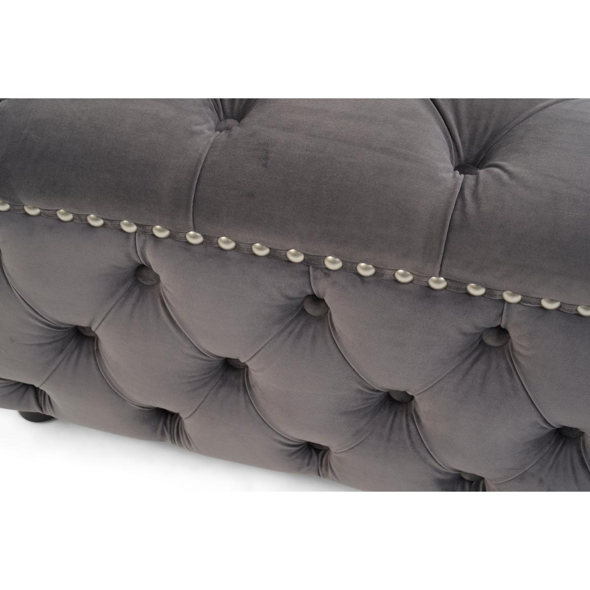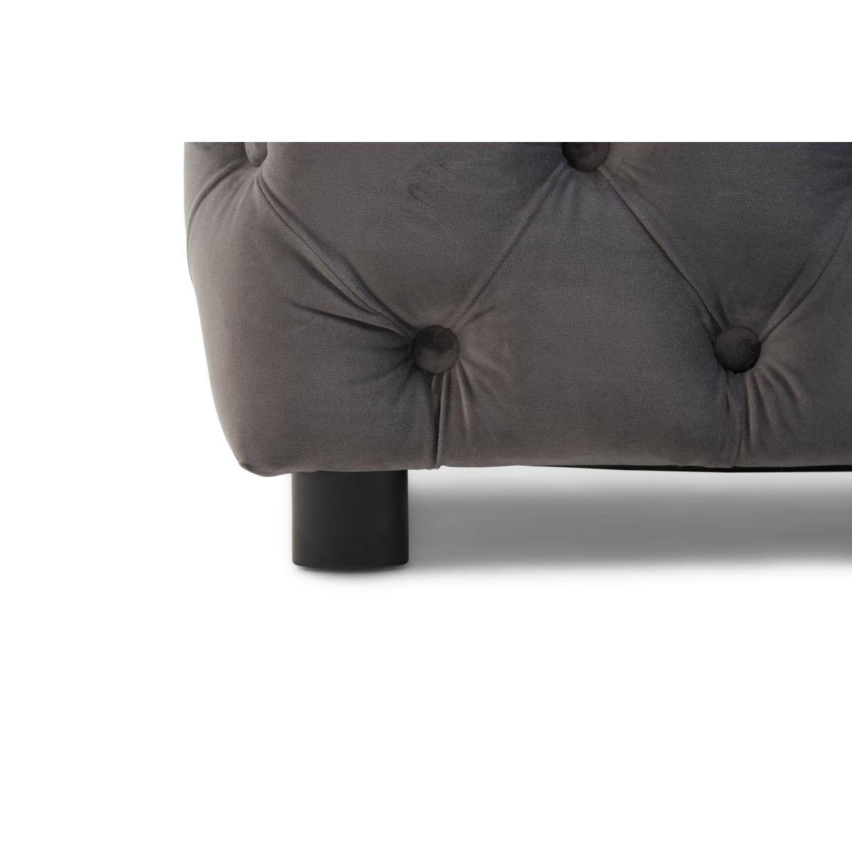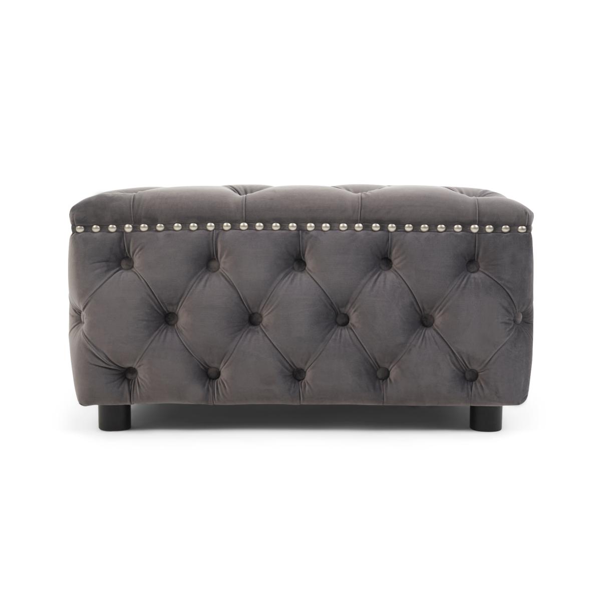 So chic for an additional touch of elegance and lush texture in your living room, the Flora Square Footstool in our gorgeous lush Grey Velvet upholstery boasts an all over deep-buttoned design and a contemporary metal studded trim. With a flat and comfortably plump top, softly rounded edges and short, sturdy solid wood legs. Lush velvet adds a luxurious and super-soft touch Contemporary metal studs and a classic deep-buttoned design make for a completely unique piece. Low to the floor for effortless leg-resting. Rounded velvet edges soften its square shape We Love: combining with our Grey Velvet Flora Chaise Sofa (right or left facing) to create the perfect living room set-up. Also available in: Green Velvet (Round and Square), Blue Velvet (Round and Square), Grey Linen (Round and Square), Cream Linen (Round and Square).