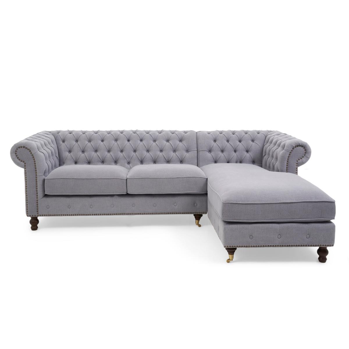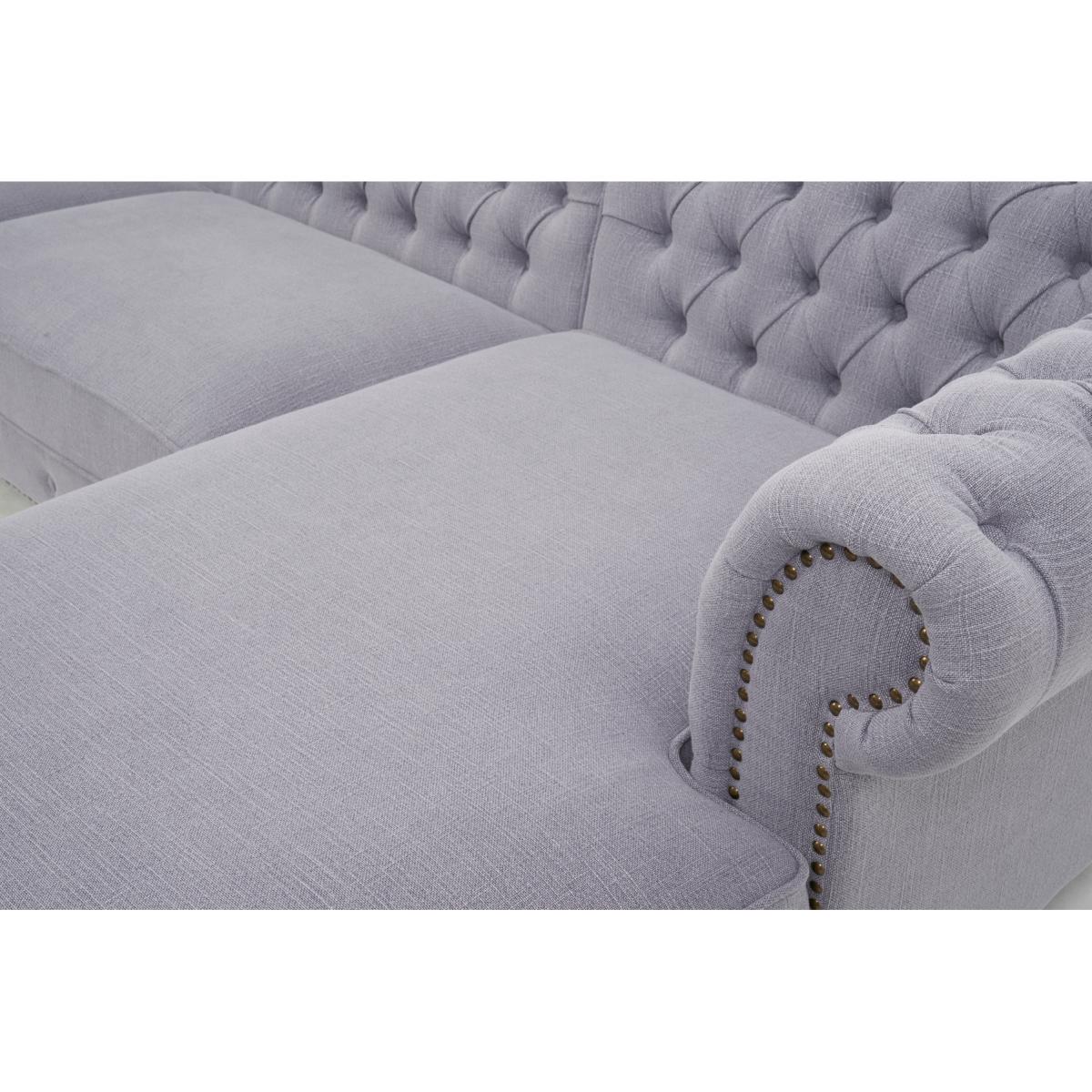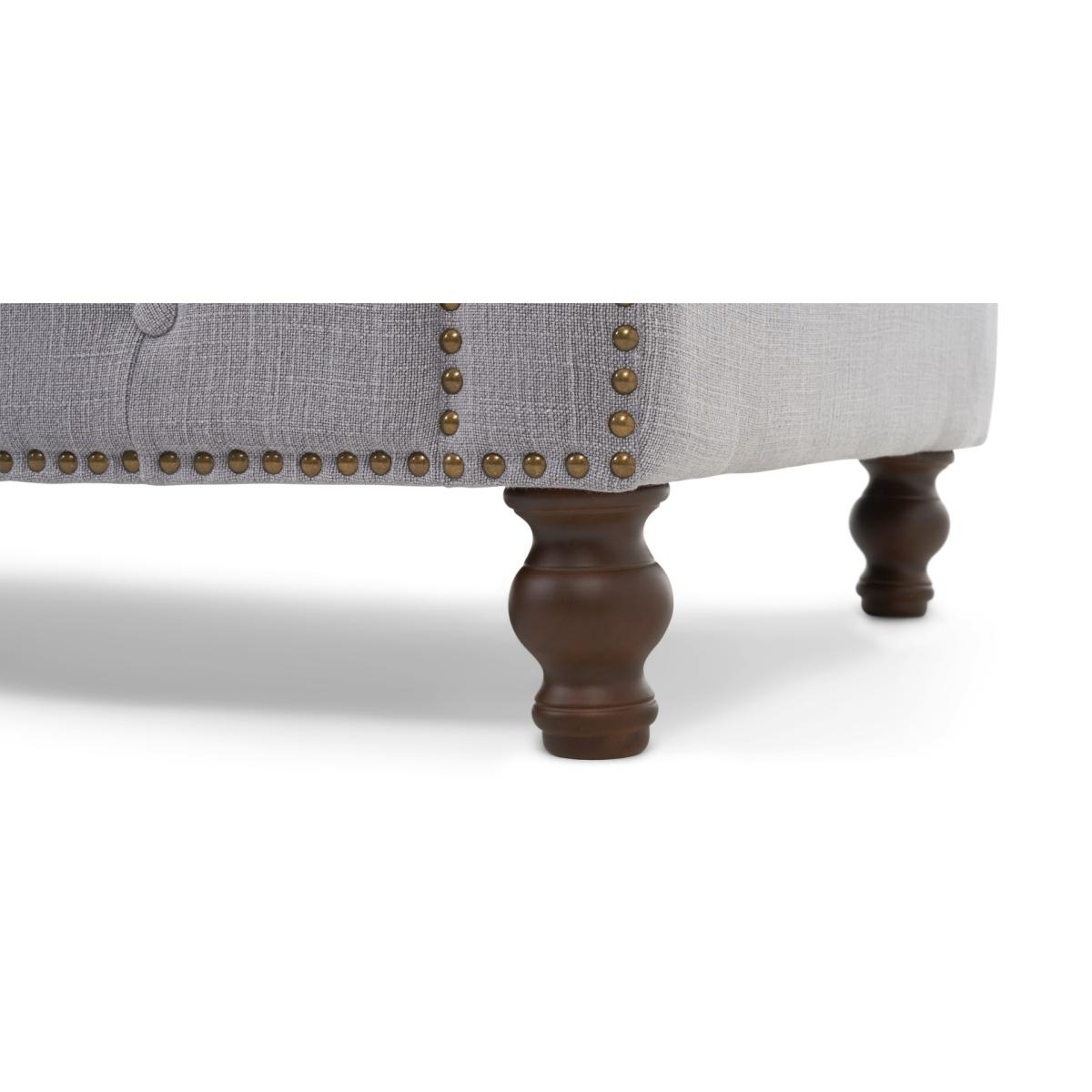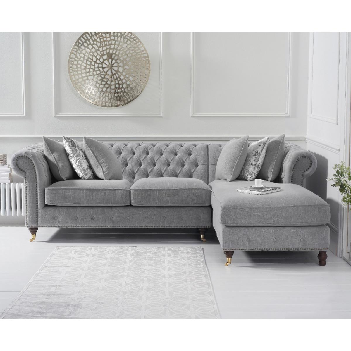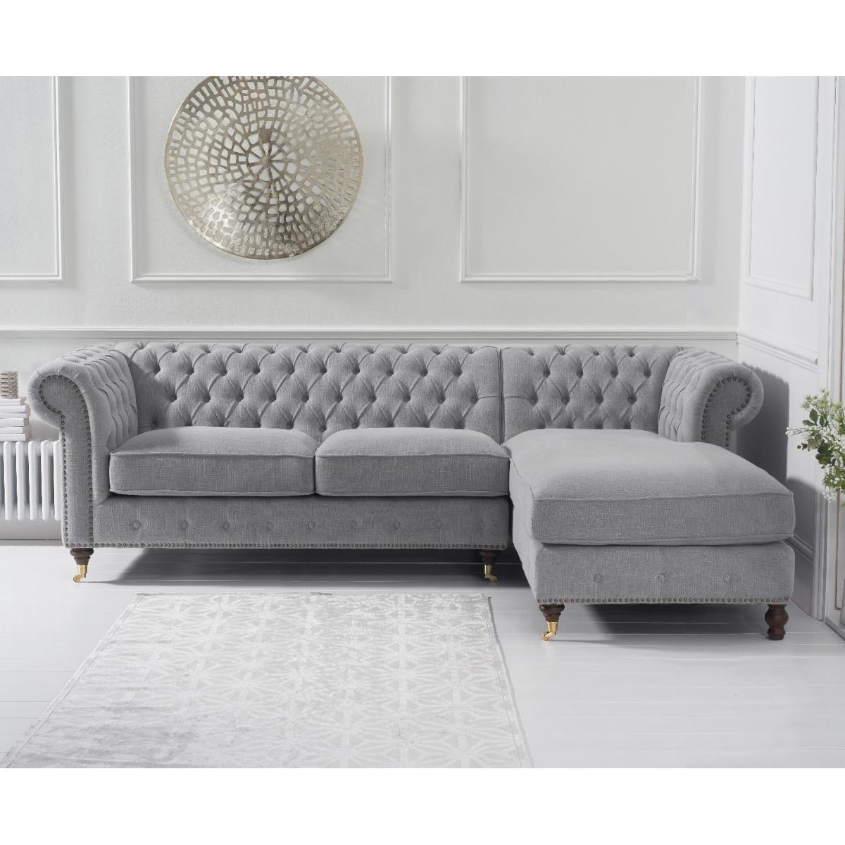 Elegant, timeless and the ultimate in comfort-meets-luxury, the Flora Medium Chaise in our light Grey Linen fabrication boasts all the classic stylings of the much-loved Chesterfield, with a chic chaise addition and fresh details for a modern feel. Right facing, with scrolled statement arms trimmed in subtle metal studs, a deep-buttoned back and plump, foam-filled cushioned seats. Upholstered in smooth, light linen for asoft and cool touchon the skin. The ultimate in everydaycosy comfortwith deep, foam-filled seats. Comes complete with 5matching scatter cushionsto style, and lounge on. Trimmed inshining Bronze metal studsfor a contemporary finish. A deep-buttoned back and arms add tonal texture andclassic Chesterfield charm. Low wooden legs with matching metal feet add support and modern metallic detail. Seats 6 +for a sofa truly fit for a full family home.