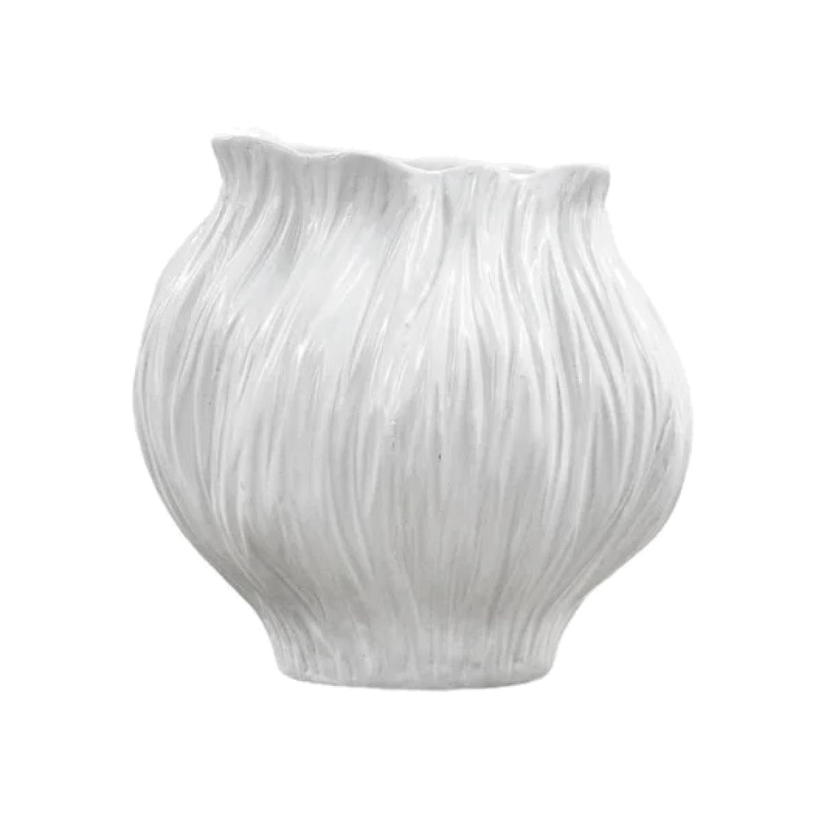 The lovely organic shape of this beautiful handmade ceramic vase is inspired by florals and is perfectly complemented by the semi matt white glaze. Two other sizes are available, and all look great either used individually or grouped together. Width 210mm Depth 190mm Height 210mm Material - Clay