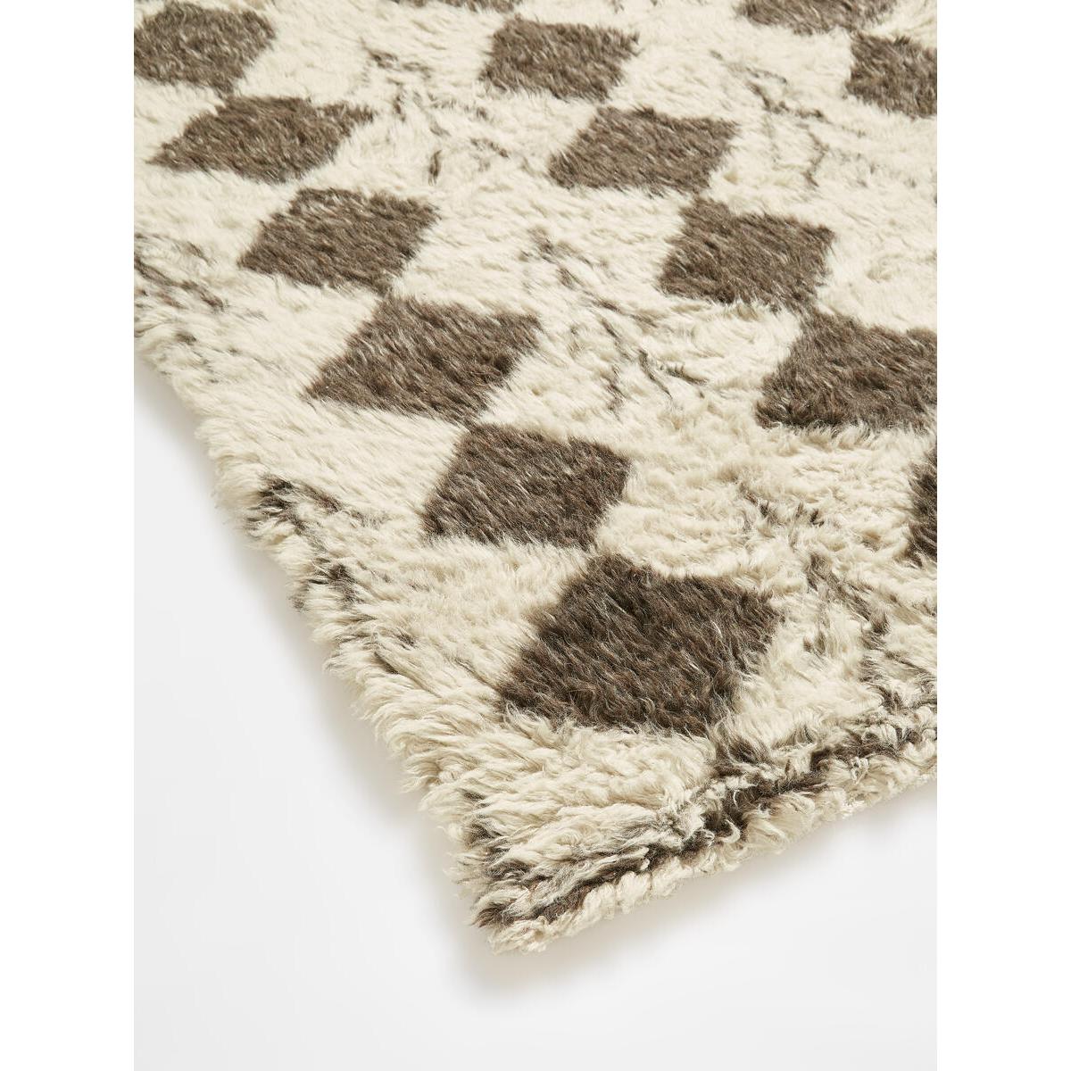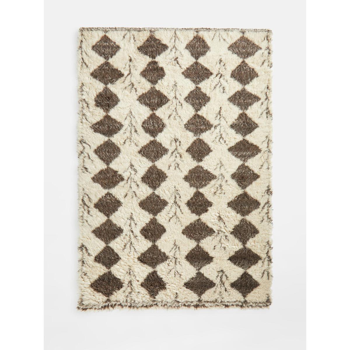 Taking its cues from Soho House Berlin, the Flora rug isinspired by Moroccan flokati styles. Hand-knotted in India from100% wool, it has rows of abstract diamonds in cream and charcoaltones. Work it into a bedroom or living space to create instantwarmth. Hand-knotted wool rug. 100% wool. Moroccan flokati style. Diamond pattern. Cream and charcoal tones. Made in India. Inspired by Soho House Berlin.