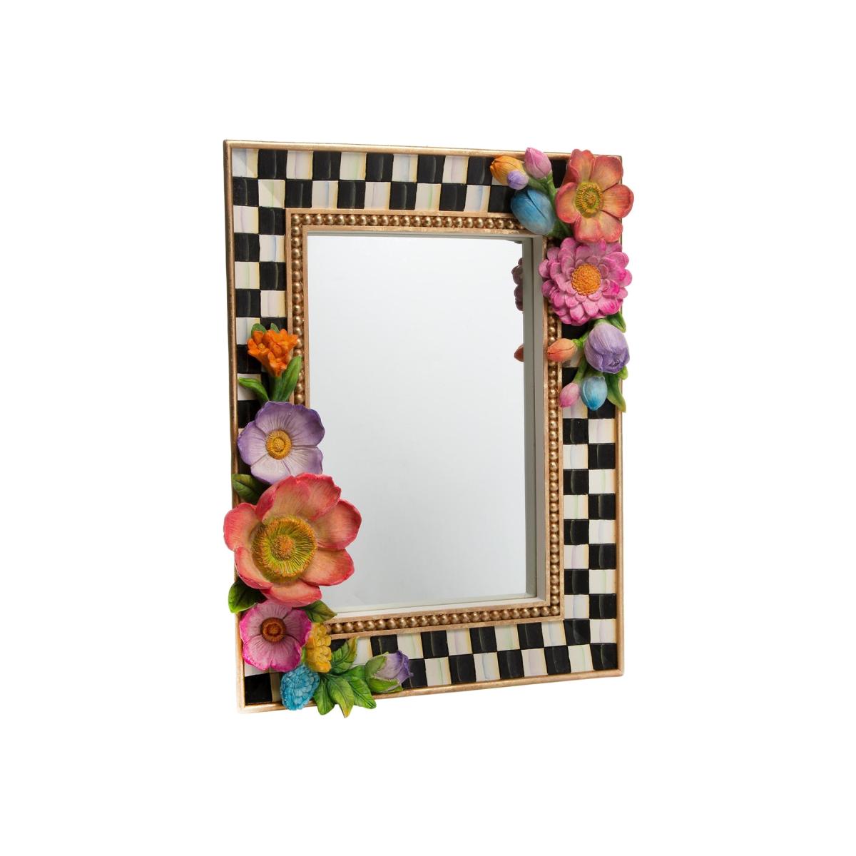 Bring some blooms into your home with this Floradot mirror from MacKenzie-. Childs. Made from resin, it features the brand’s signature hand-painted Courtly Checks and has been finished with a bold bouquet of three-dimensional blooms.