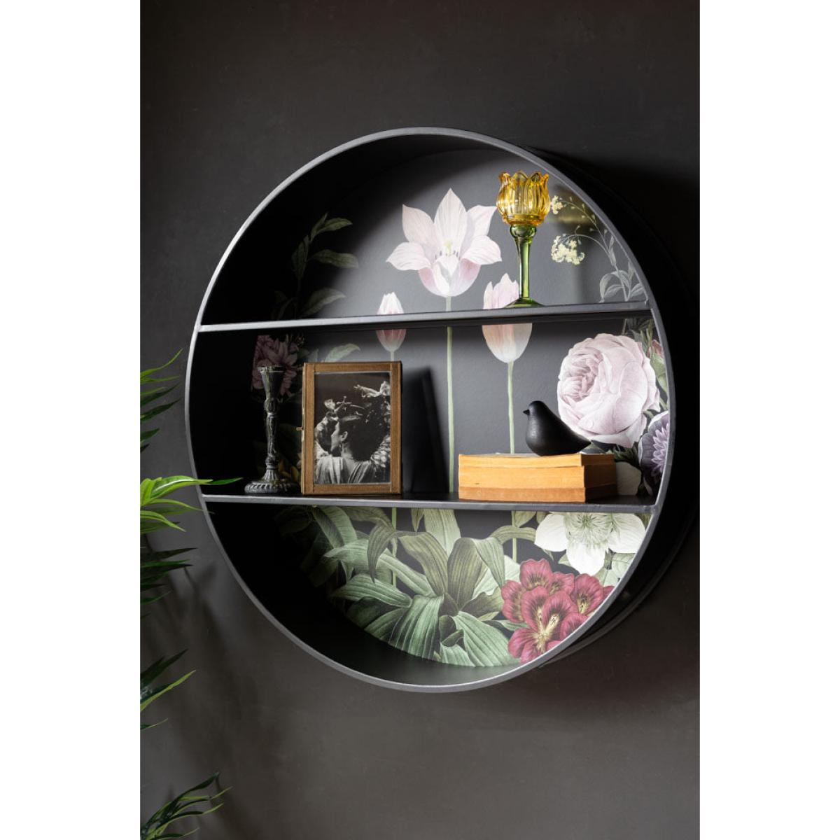I’m a fan of this round floral shelf for the way the black metal frame gives a clean, modern outline while the botanical print softens the look. It suits contemporary living rooms, home offices or a vintage-inspired hallway, especially against a matte-painted wall where the graphics really pop. For styling, keep it simple: on the top tier, group a small potted plant and a sculptural candle; on the bottom, stack two or three coffee-table books and prop a slim photo frame that picks up one of the florals’ accent hues. The circular form also works well to break up rows of straight-edged furniture, adding interest without looking fussy.