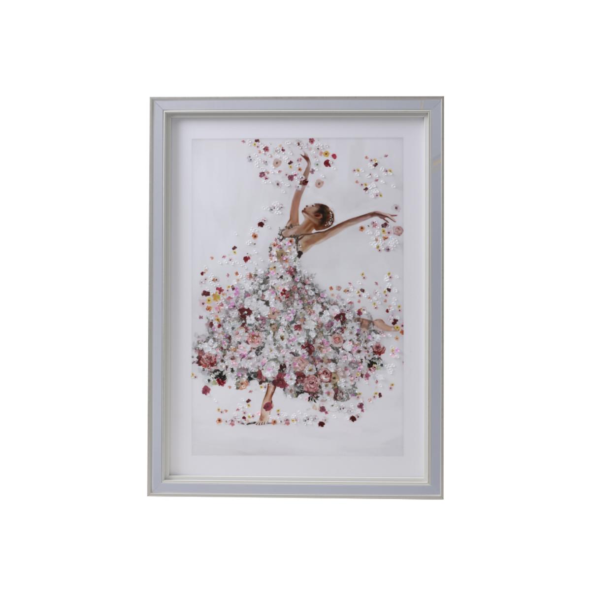 Offering elegance and charm, the Floral Ballerina Embellished Art will provide a gorgeous focal point for any wall. The artwork features a ballerina in the middle of a dance, her dress dripping with bright flowers for a sense of magic and movement. It's finished with little glass embellishments for a shimmering, 3D effect and a coordinating silver frame for a cohesive feel. It's quick and easy to hang via the hooks on the back in any room for the perfect finishing touch.