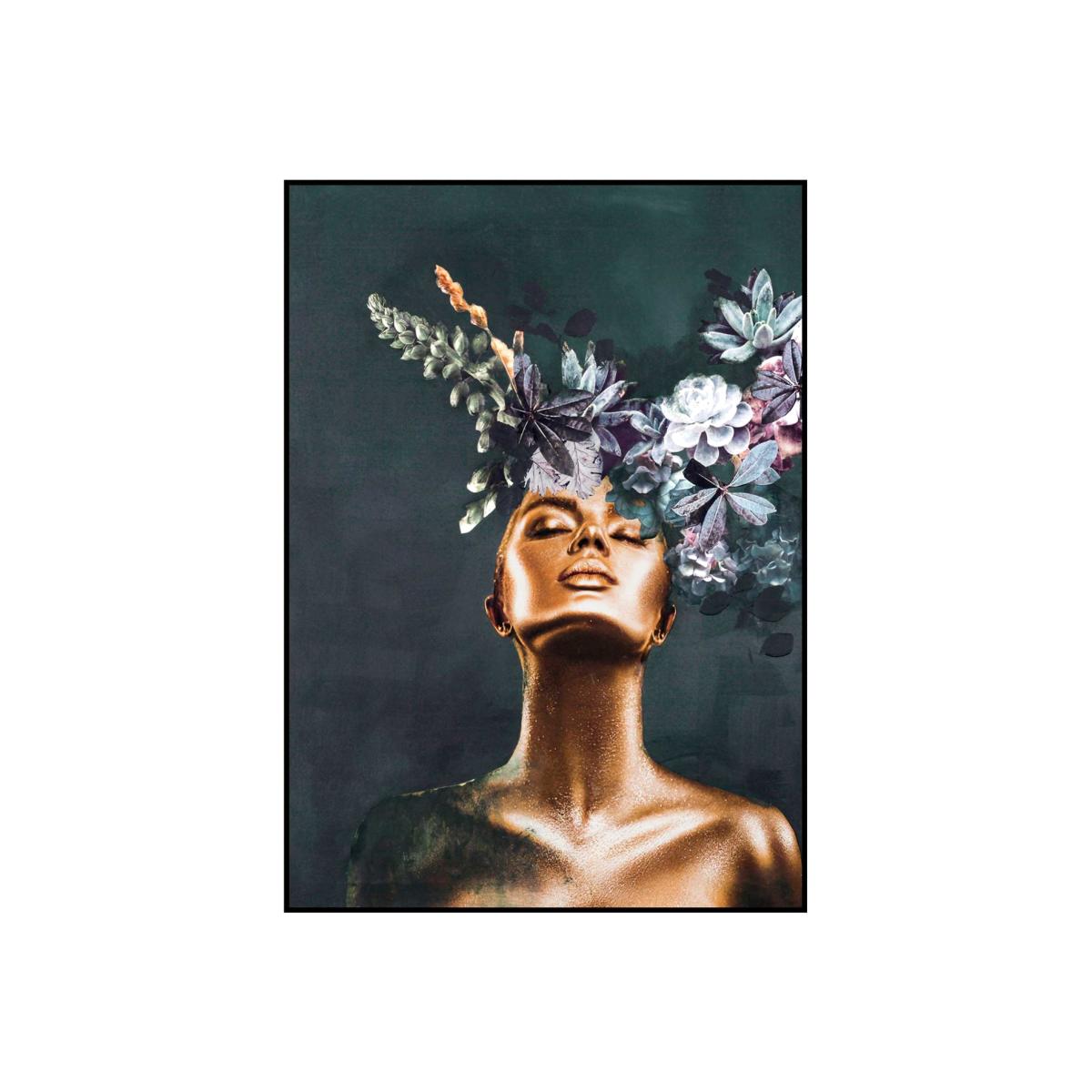 I love this floral print; its bold, contemporary design makes it a versatile piece for adding personality to a range of interiors. It works particularly well in modern or minimalist spaces where statement art can create a focal point, but it can also add contrast in more eclectic or boho settings. When styling it, consider pairing with sleek frames or even a simple, natural wood surround to keep the look fresh. For practical tips, hang it at eye level in a living room or bedroom, and consider grouping it with other artworks or plants to enhance its visual impact. The striking mix of florals and portrait makes it an ideal choice for creating a stylish, curated feel.