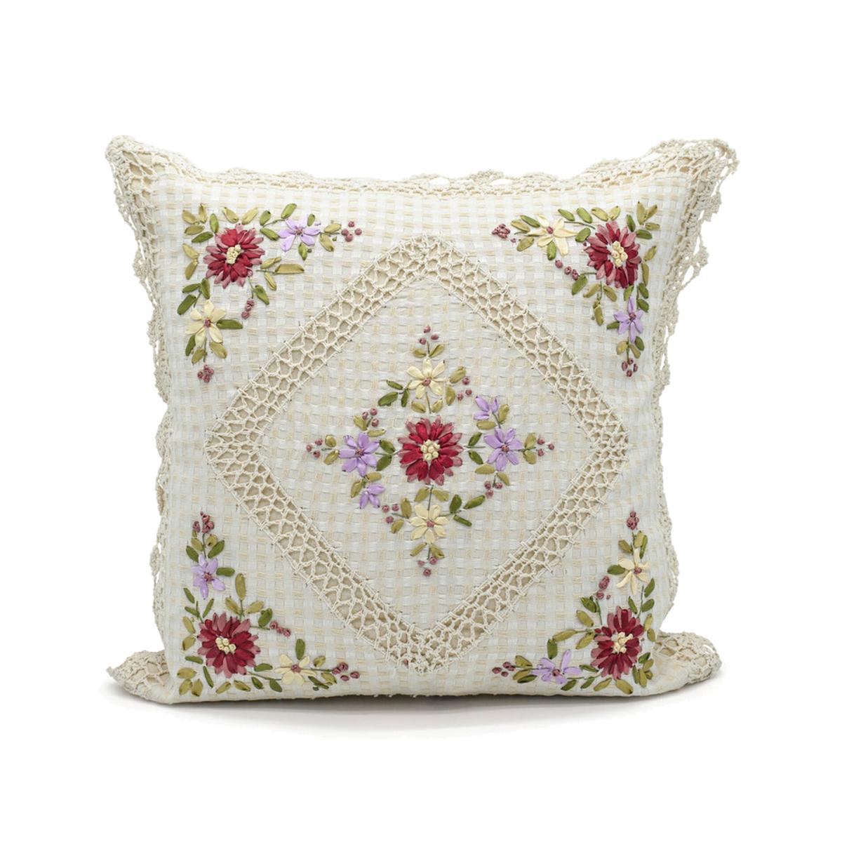 Floral Crochet Detail Cushion - Neutral / 0.15kg
