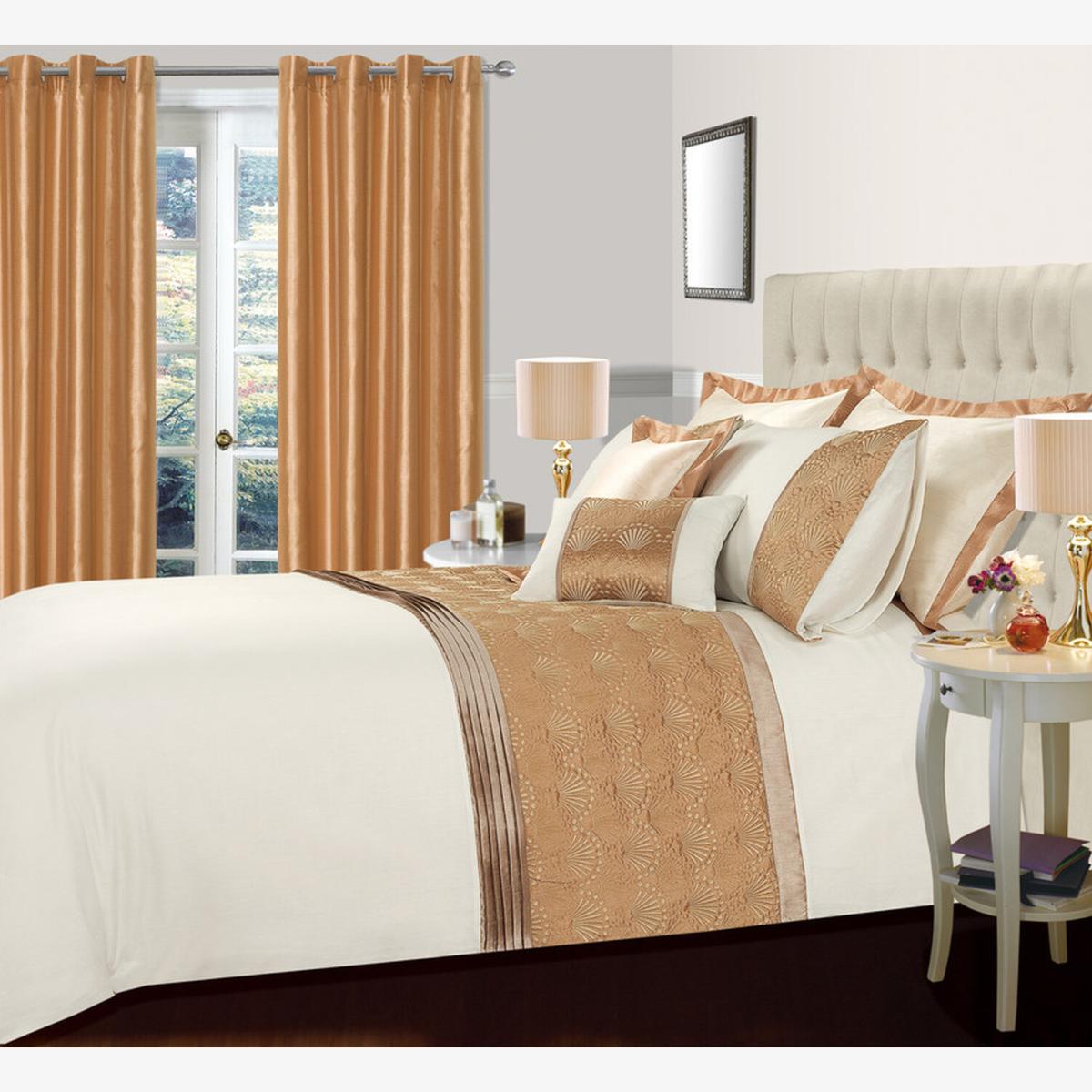 Floral Effect Embroidered Luxury Valdez Duvet Cover Pillowcase Set - Latte / Single