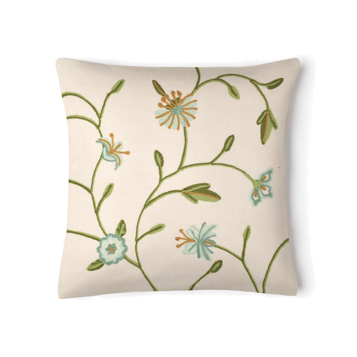 Floral Embroidered Cushion - Duck Egg / 43cm