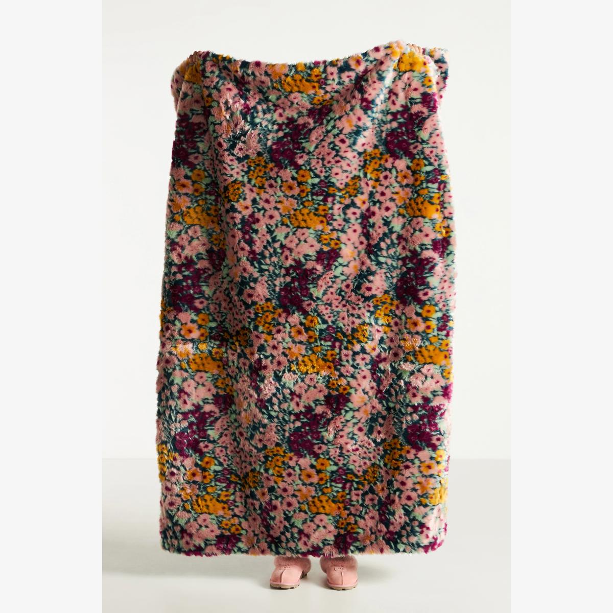 Experience the velvety softness of our Floral Faux-Fur Throw, featuring an exclusive Anthropologie pattern. It's a touchable luxury that adds a dash of floral elegance to your living space. Floral Faux Fur Throw Blanket by Anthropologie