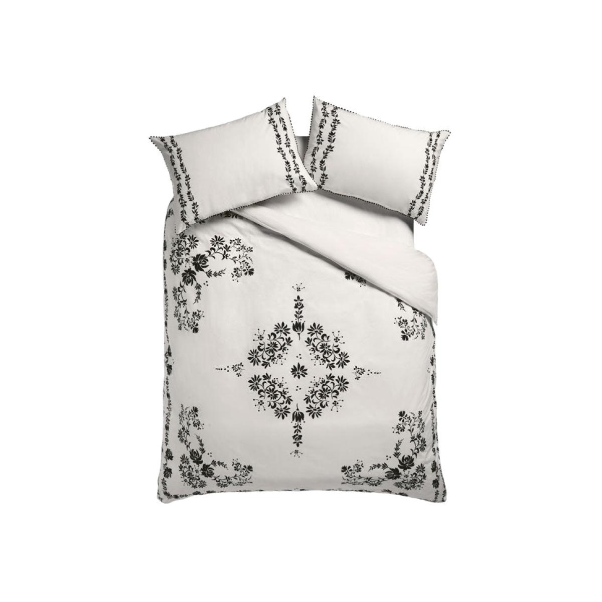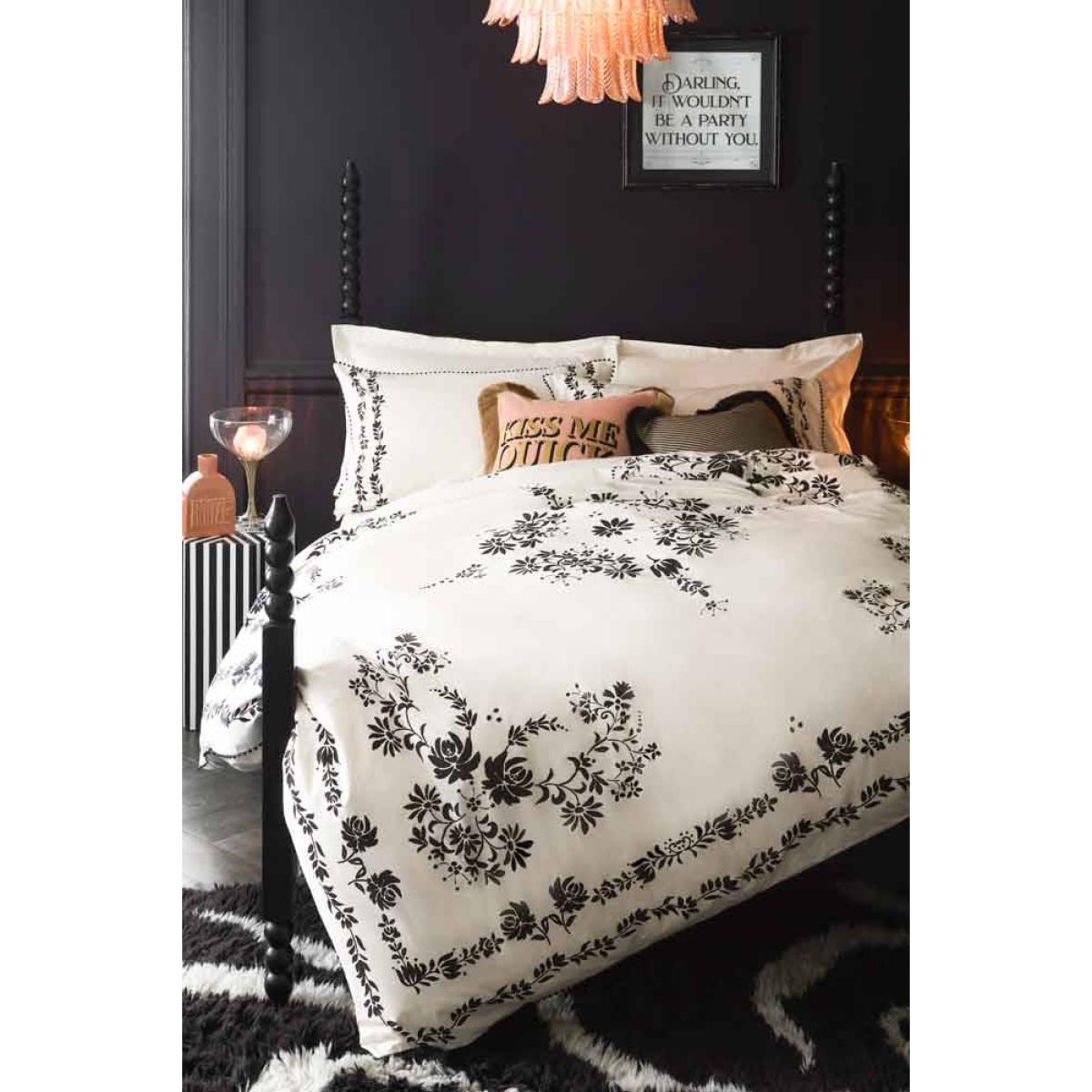 <!--td --> And so to bed...this gorgeous cotton bedlinen set means settling down for the evening has never felt so alluring. In fact, the RSG team predicts that even those of you who prefer to burn the midnight oil will be making a beeline for the bedroom early doors! What we love most about this design is that the folk-inspired print is bold yet delicate, in a monochrome colour palette that offers a grown-up way to enjoy florals. The matt black detailing pops spectacularly against the cream-coloured cotton, and has a modern Gothic feel. And because cotton sheets offer a cosy yet cool night’s sleep, you can snuggle down with confidence, knowing that as soon as your head hits the pillow, you’ll be drifting off for a restorative and refreshing slumber, your cheek cool against the cotton. The bobbled edges add texture and interest, so if you tend towards more muted tones or a minimalist approach to interior design, this is the perfect way to create a stylish centrepiece or focal point that doesn’t feel too overwhelming. This is bed linen at its best, with a 200-thread count offering the ultimate in comfort and luxury. Floral Folk Duvet Cover and Pillow Case Set available in single, double, king and super king;Micro pom detailing on a cream bedding set. Folk floral print. Housewife pillowcases with micro pom detail.1 x pillowcase for single, 2 x pillowcases for all other sizes.