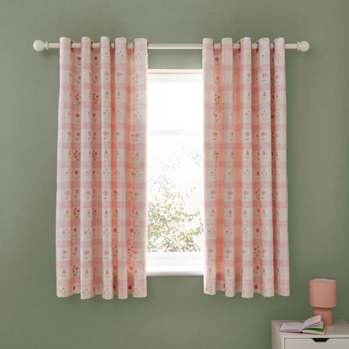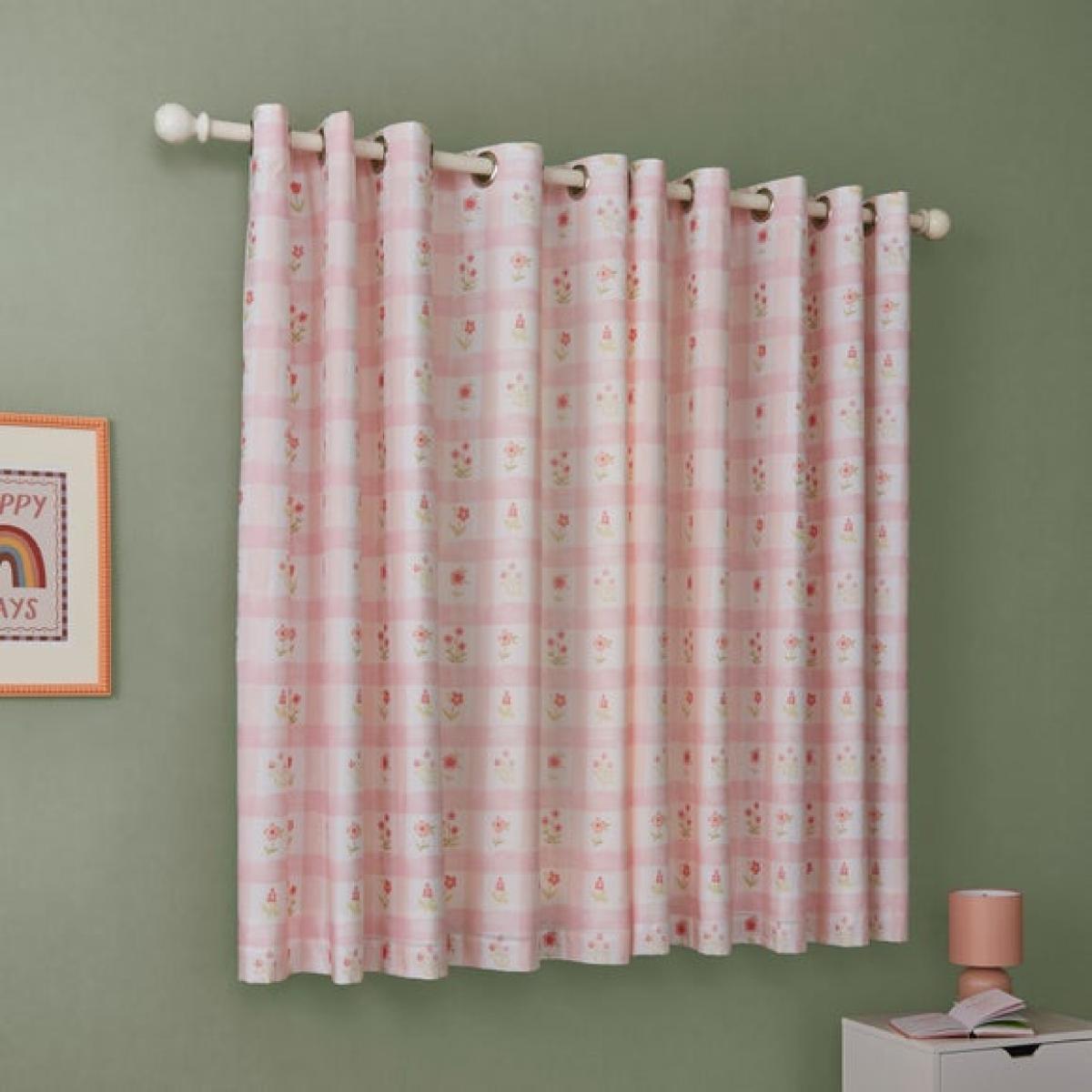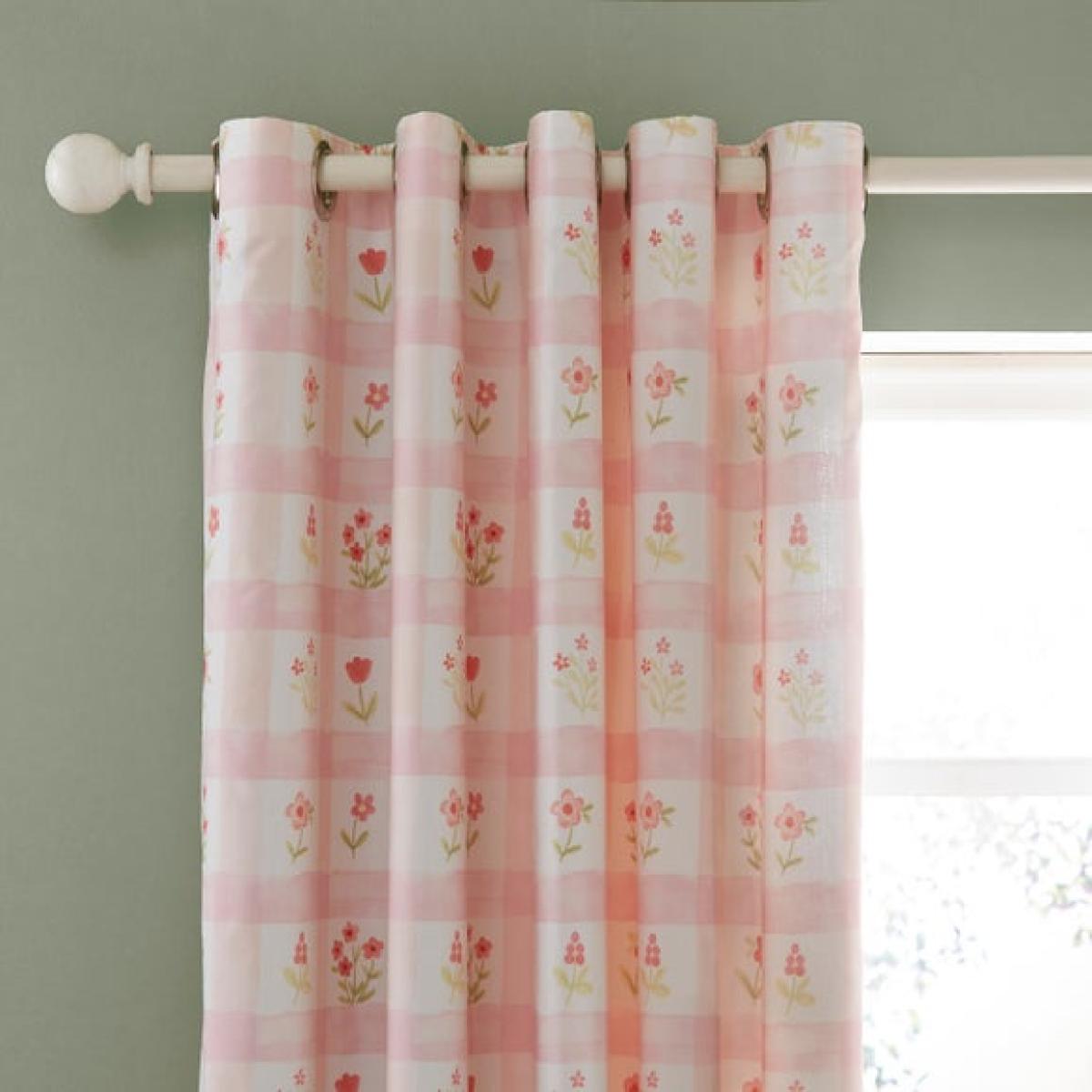 * Soft and Durable Polycotton composition * Delicate floral design * Dry Clean only * Corresponding items available Bring countryside charm into their bedroom with the Floral Gingham Eyelet Curtains. Featuring a sweet blend of tiny florals and classic gingham in pretty pink tones, these curtains are perfect for creating a warm, peaceful space. The blackout lining helps block light for uninterrupted sleep, while the soft polycotton fabric provides long-lasting comfort and durability. With eyelet headers for fuss-free hanging, they’re as practical as they are pretty.