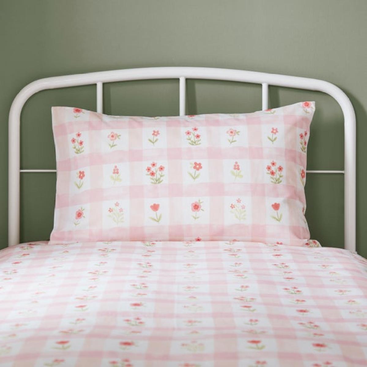 Floral Gingham Polycotton Duvet Cover & Pillowcase Set