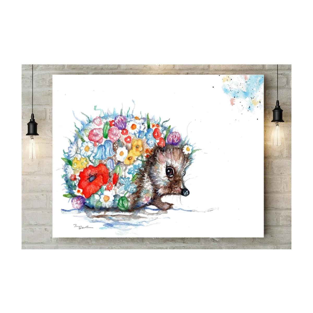 Inspired by the beauty of nature, Be Coventry originally painted this whimsical scene of Flora the Hedgehog in professional watercolours. Now recreated in print on a box canvas, this artwork will enhance any room in your home. The watercolour design is printed onto 260gsm Matte Polyester canvas, and attached to quality pine timber. The canvas is taped on the rear and is supplied with a wall-hanging kit.