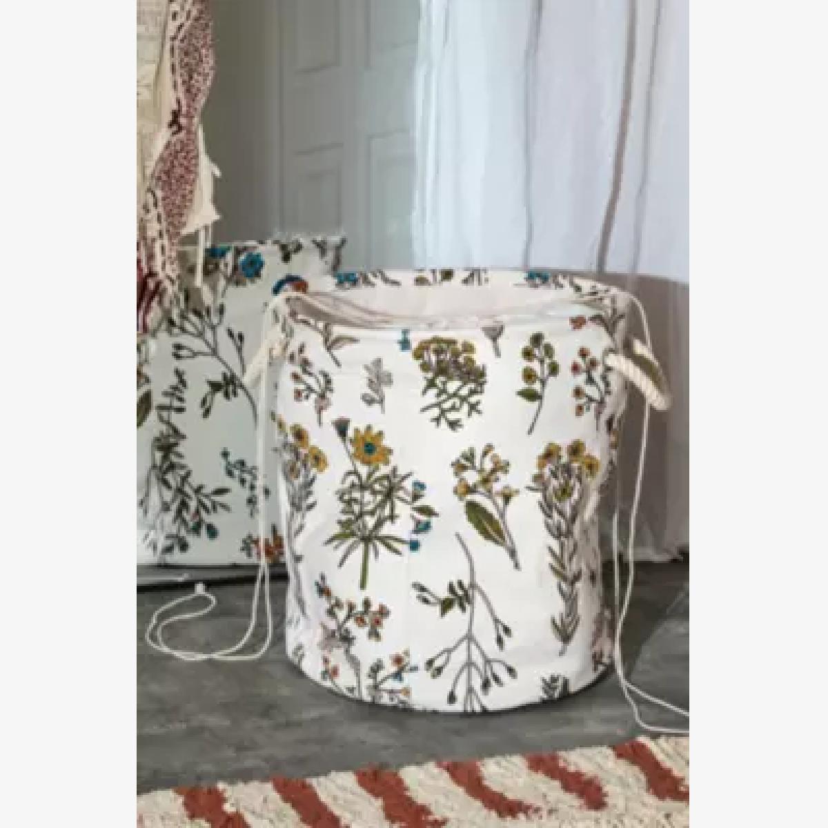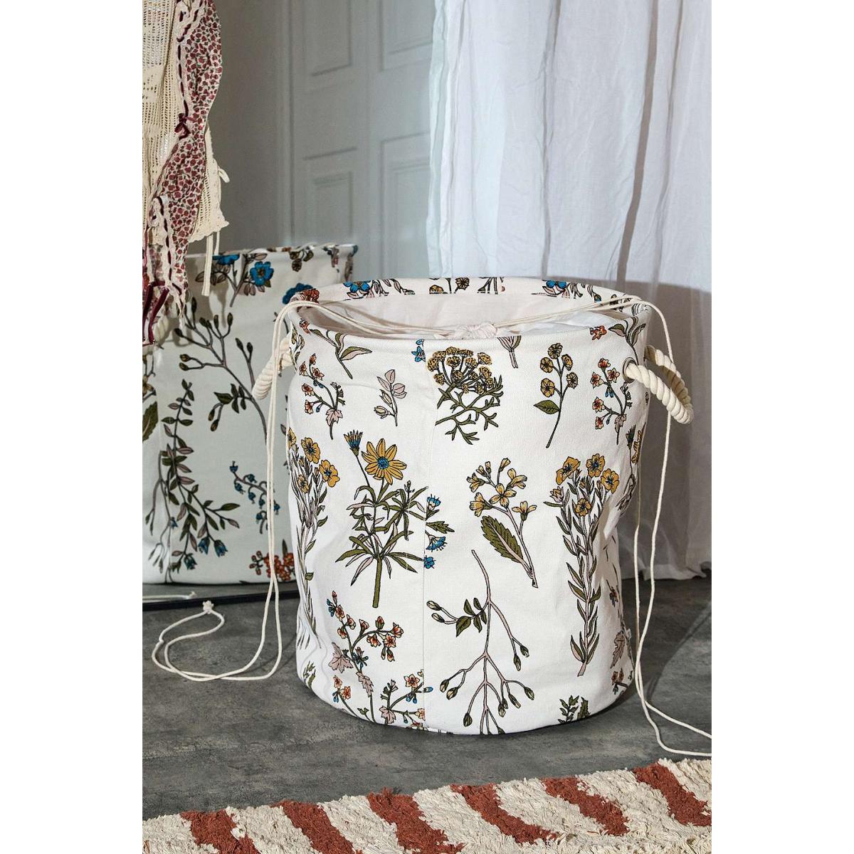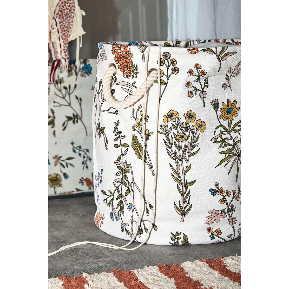 Store your laundry in style. Laundry basket with a cylindrical shape crafted from woven cotton with a cute floral print, two rope handles and a drawstring top. **Content + Care** \- 100% Cotton- Spot clean
