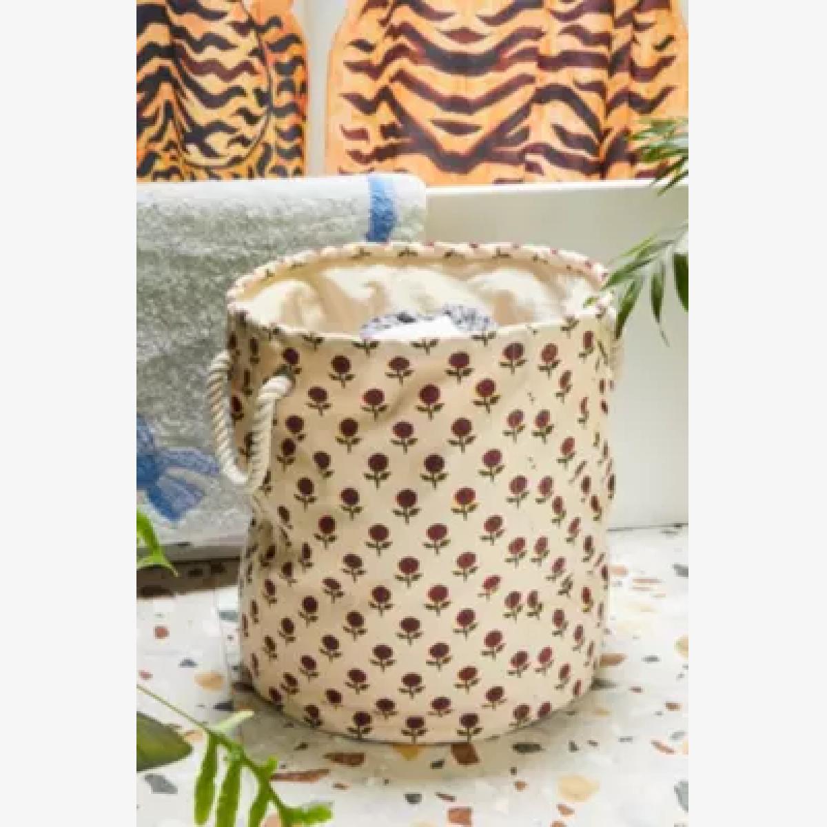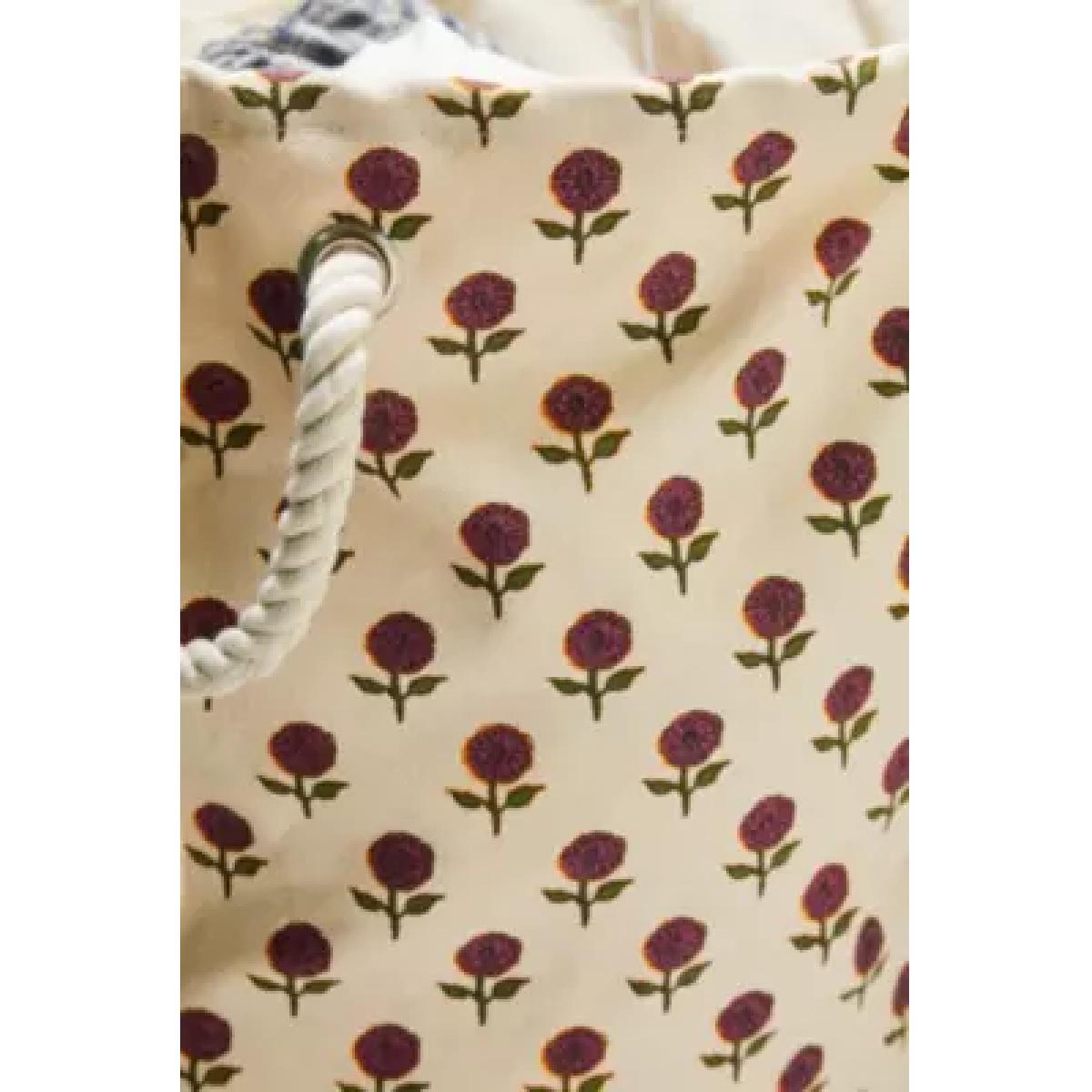 Cute floral prints top this woven laundry basket for your getting ready space. The cotton storage basket features an adjustable toggle top and woven rope handles for moving laundry to where you need it. **Content** \- 100% Cotton