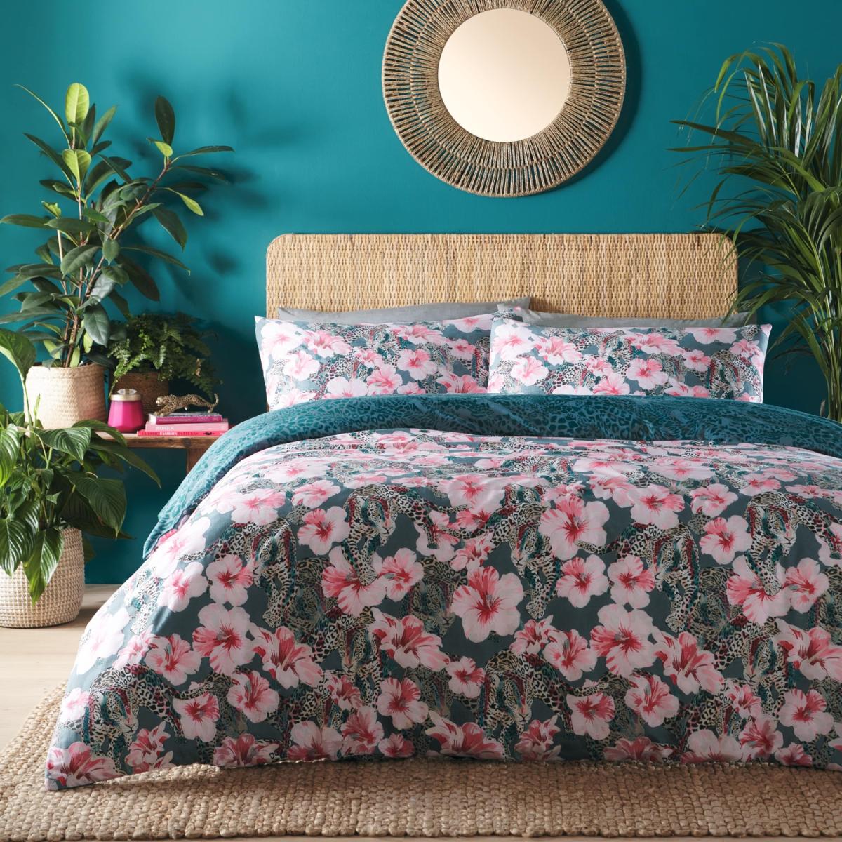Add some sass to your bedroom with our striking Floral Leopard duvet cover set. Beautifully painted in watercolours, this fierce leopard stalks around a background of pretty pink flowers creating an on-trend, must have bedding. Fully reversible leopard print reverse providing two looks in one. Made from easy-care polycotton, this duvet cover and pillowcase set is stylish and offers great quality.