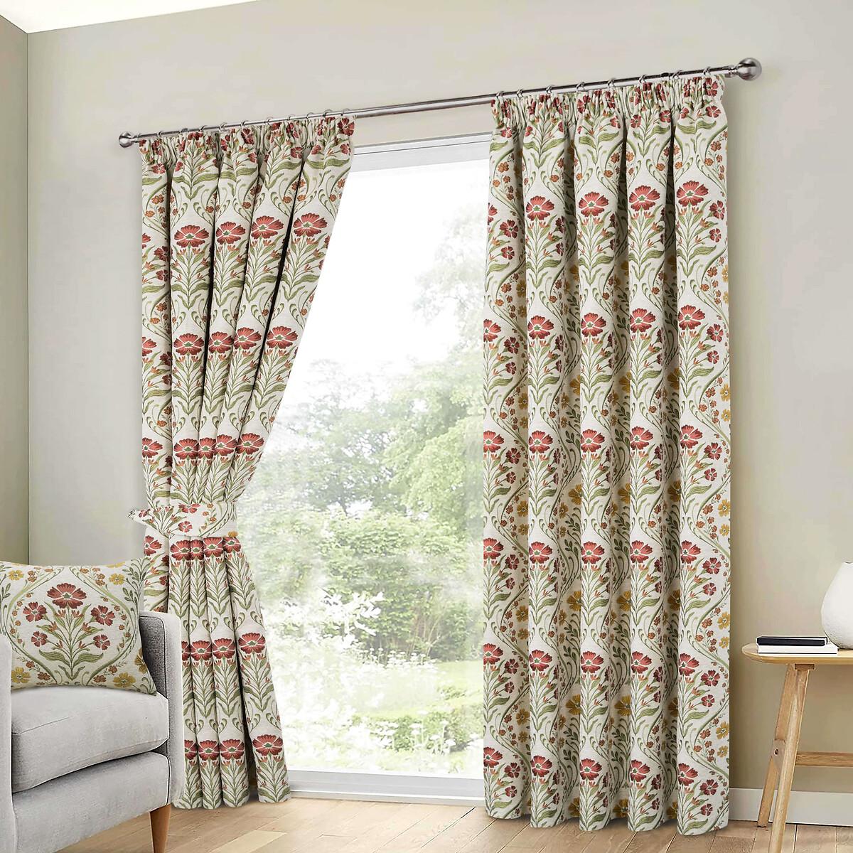 These floral lined pencil pleat curtains are a great addition to both traditional and vintage-inspired interiors, thanks to their classic floral pattern and timeless pleating style. I love how the lining adds a touch of sophistication while also helping to improve insulation and light control. They work well in country cottages, shabby-chic schemes, or even eclectic spaces that embrace bold prints. For styling, consider pairing them with neutral walls and simple, understated furniture to let the fabric be the focal point. And don’t forget to hang them high and wide to create the illusion of larger windows and a more grand appearance.
