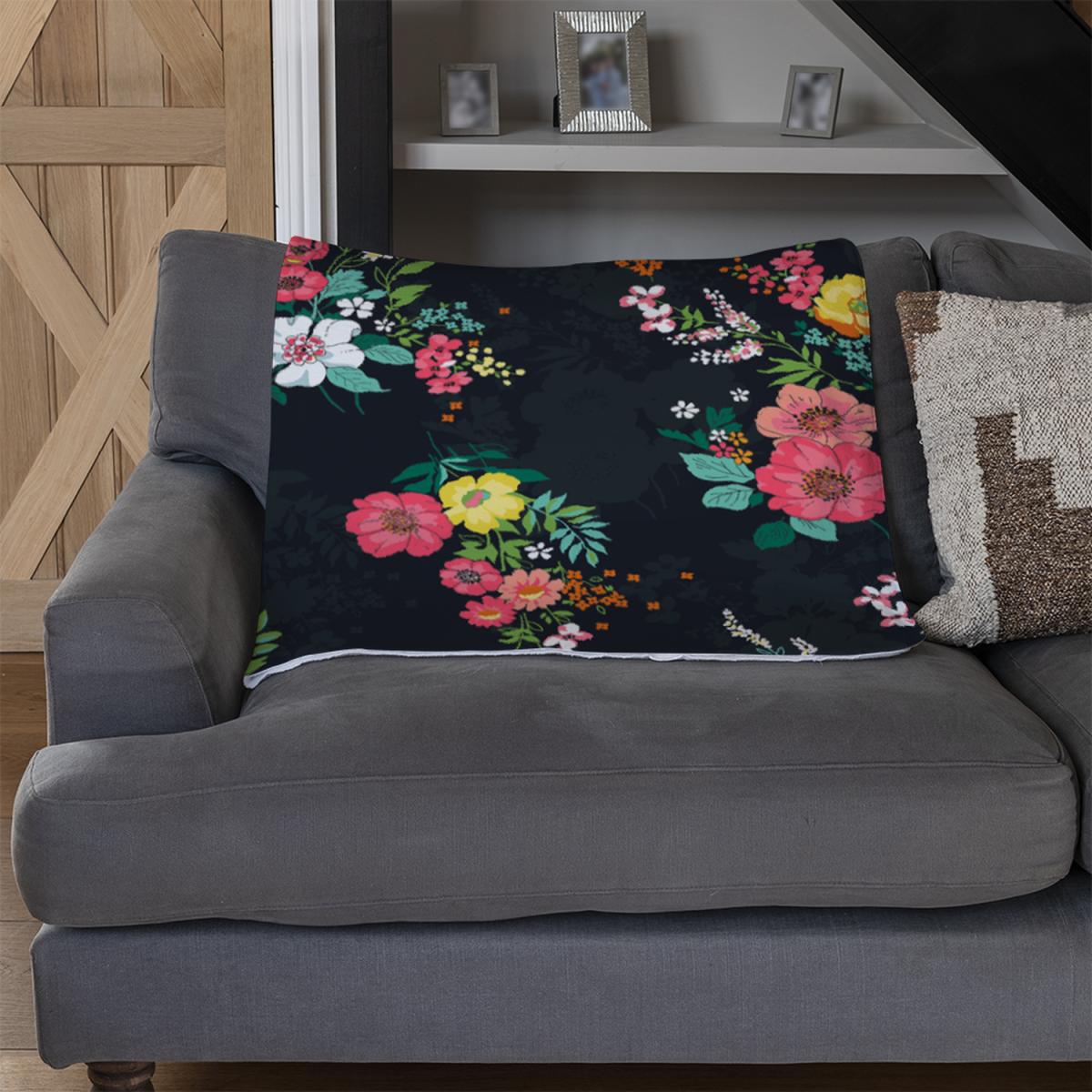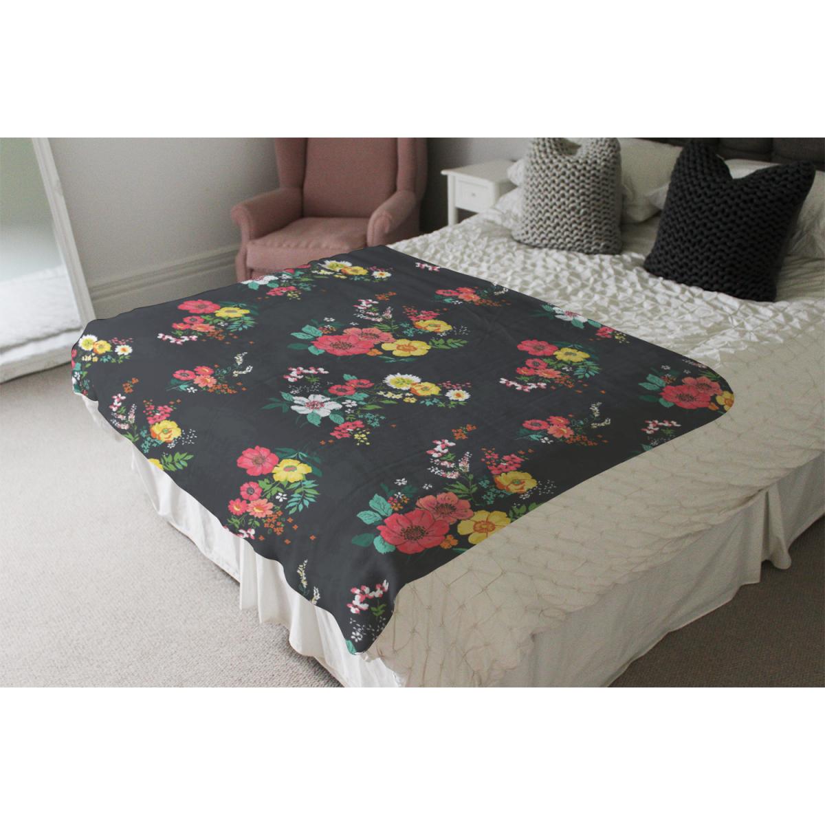 Floral Pattern Blanket - Black