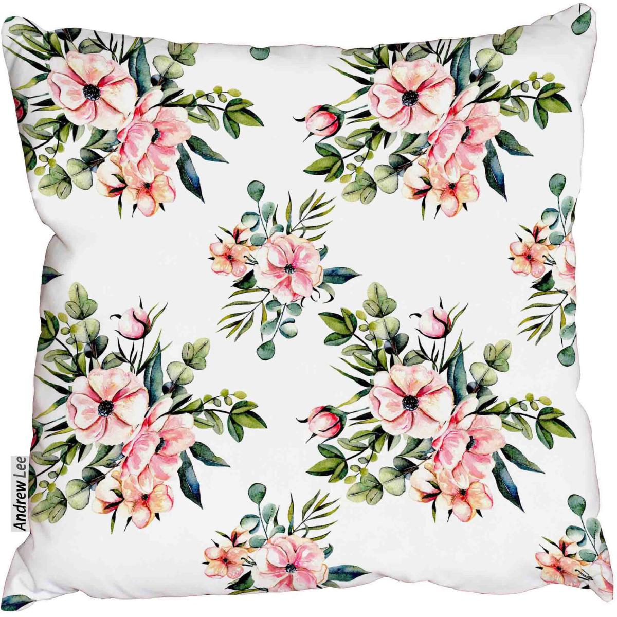 Floral pattern with watercolor pink flowers Cushion - Pink / 60cm