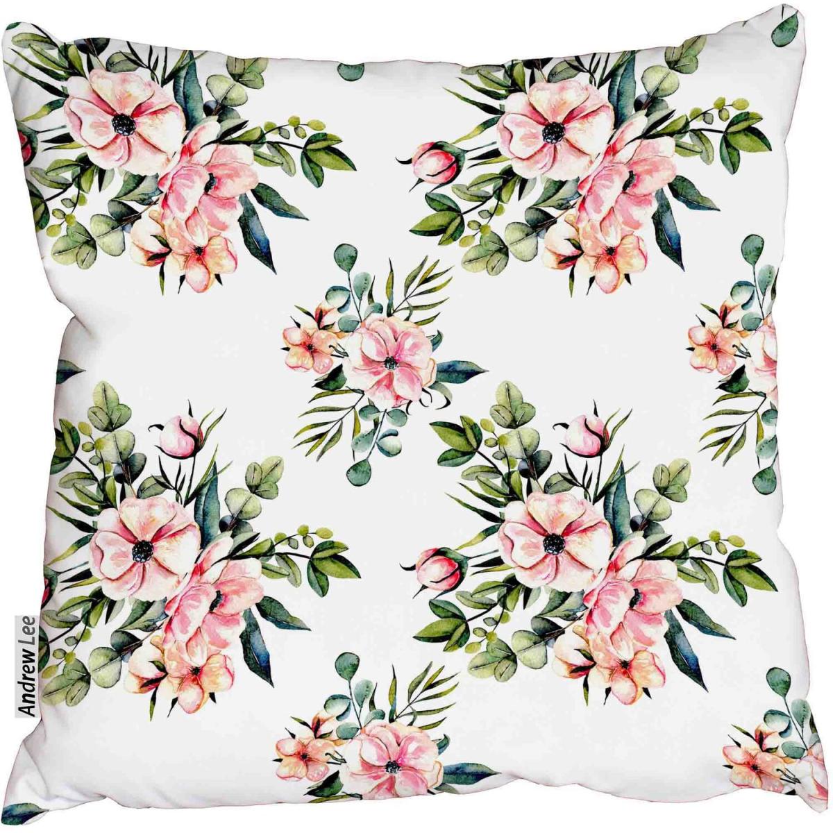 Floral pattern with watercolor pink flowers Outdoor Cushion - Pink / 60cm
