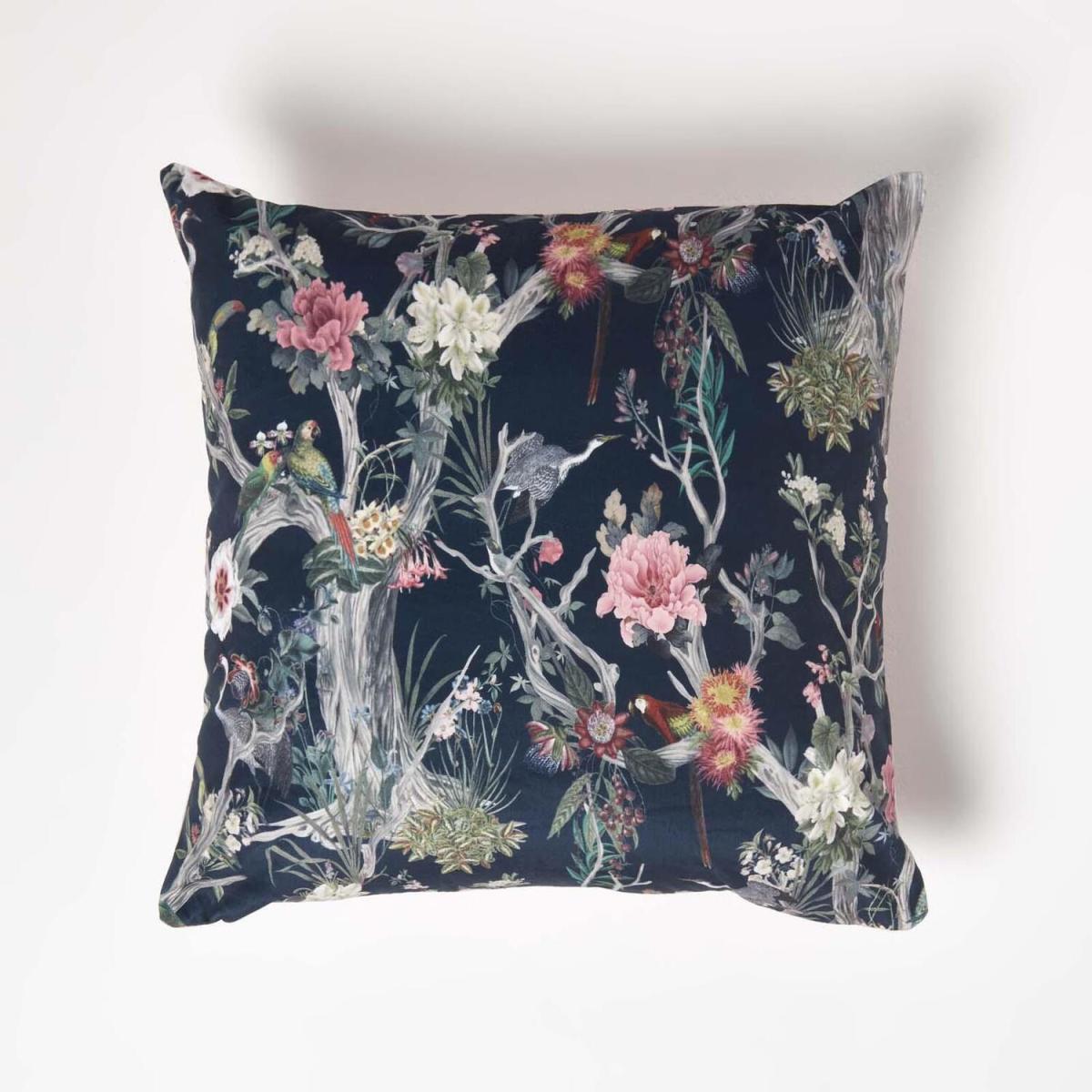 On-trend velvet cushion with a reversible design. Plain on one side, with a botanical garden velvet print on the other, this velvet cushion is ideal for adding a burst of colour to your living room or bedroom. This contemporary-style cushion cover is woven from super soft velvet and features a plain reverse, making it easy to style. Complete with a generous microfibre filling, this cushion is perfect for layering up on your sofa and bed, or use alone on an armchair for added comfort. Each cushion measures 46 x 46cm, cool wash at 30 degrees only.