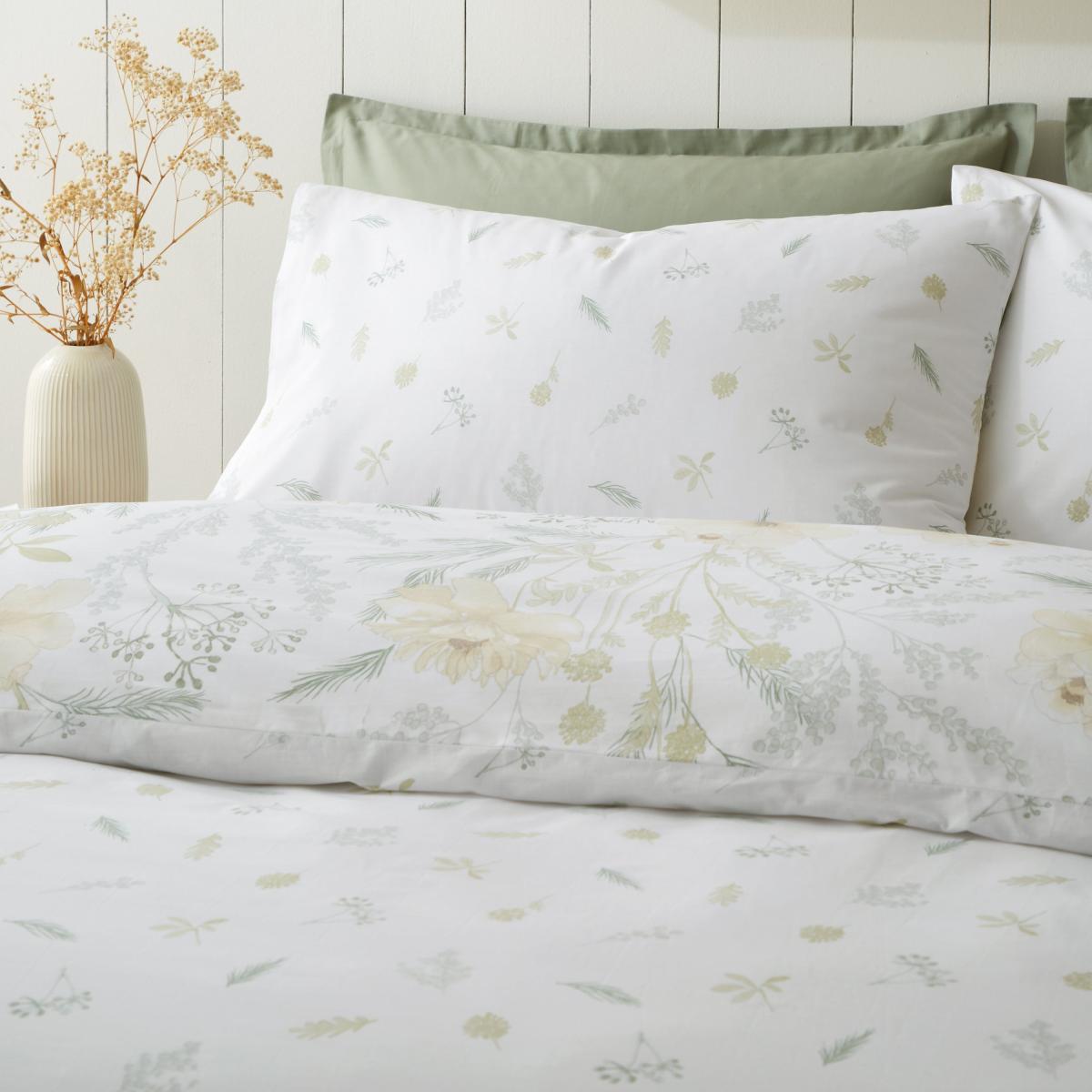 * 100% Cotton composition* Floral design* Button closure* Machine washable Embrace the beauty of nature with the Floral Shadows collection. This design features enchanting patterns that evoke a charming floral aesthetic. Woven from 100% cotton, this bedding is naturally soft, breathable, and comfortably smooth, making it perfect for year-round use. The reversible design adds versatility, and the set includes a duvet cover and pillowcase with a button closure. Machine washable for easy care. This collection is verified by OEKO-TEX and independently tested for harmful substances as well as manufactured using sustainable processes under socially responsible working conditions. MADE IN GREEN by OEKO-TEX is a unique product label to trace the countries and production facilities - search the product label for more information.