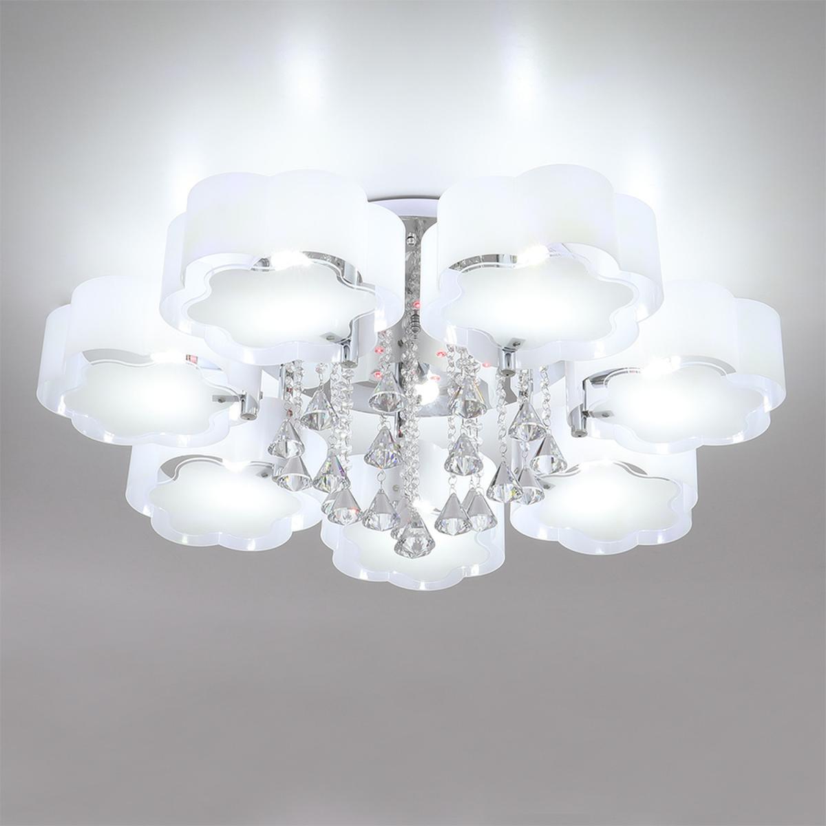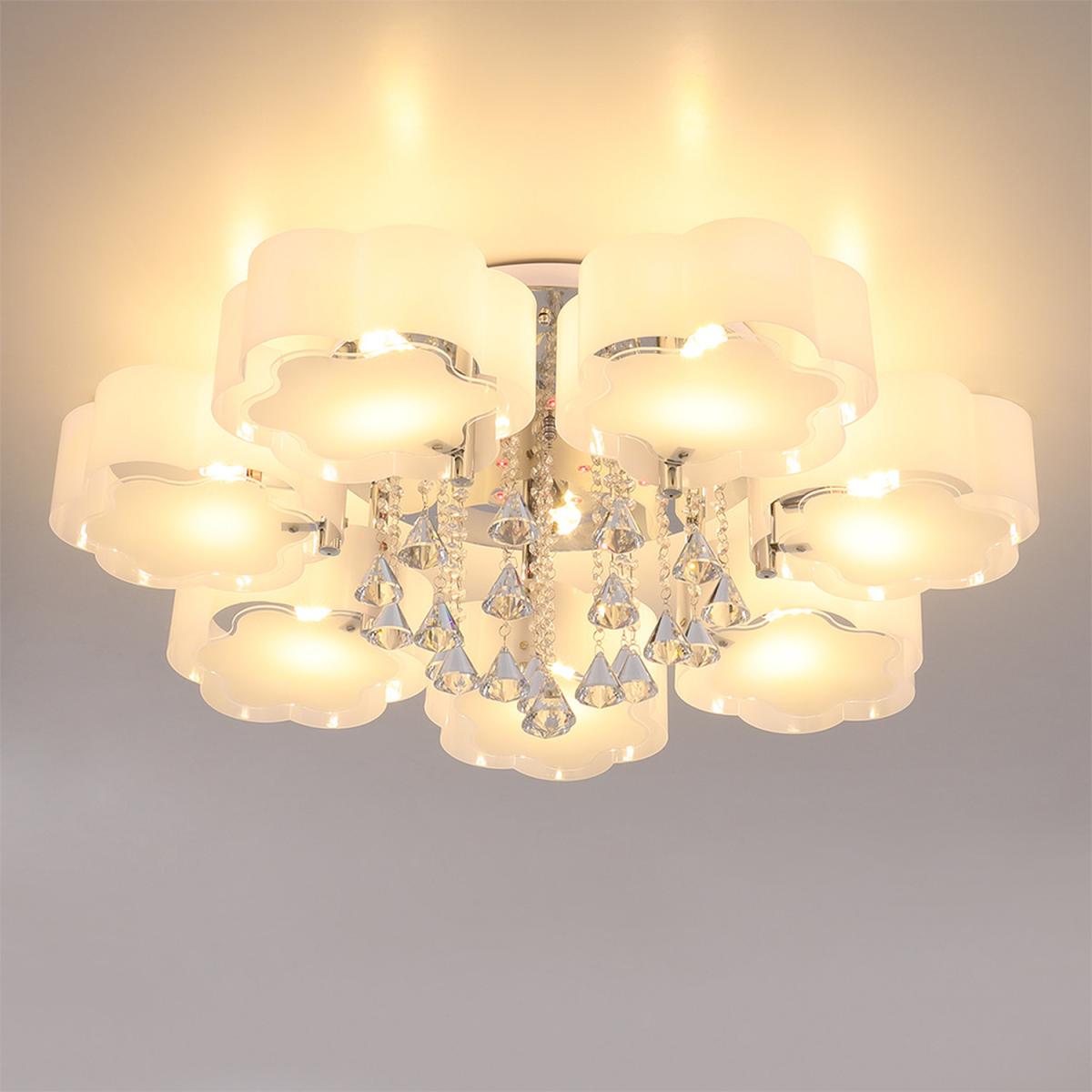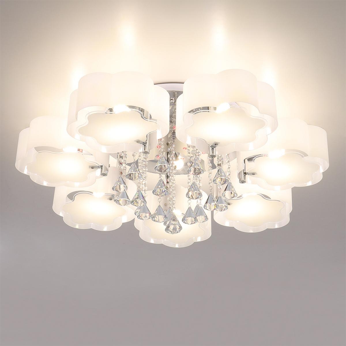 This ceiling light features an elegant design. The lampshades are beautifully shaped into a flower, which creates a harmonious atmosphere if you place this light at your place. Made from acrylic, this ceiling light is lightweight yet high-quality. It is easy to spot that in the middle of the light, there are several strings of crystals, which highlight the whole light.