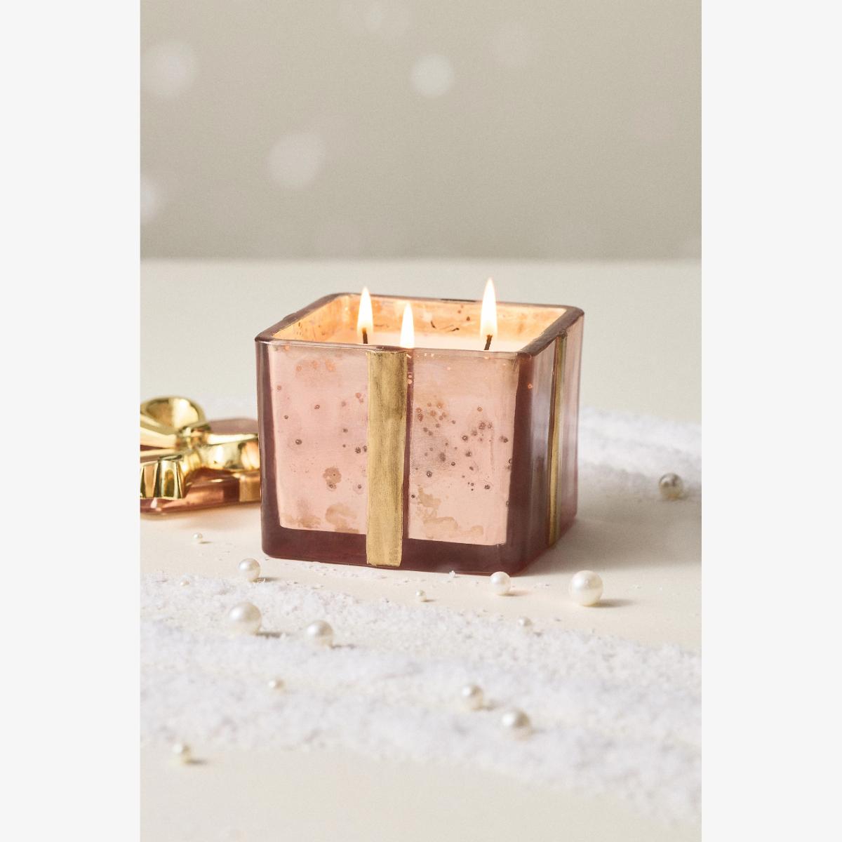 **Sugared Poinsettia (Floral):** Rich, velvety petals of crimson poinsettia layer with the sweet essence of soft magnolia blooms and shimmering orange flower over verdant green and sun-dappled woods aromas. *For the best burn experience, keep the following in mind:* * The first time you light your candle, allow it to burn until the wax pool melts all the way to the edge; for a larger candle, this may take several hours. Wax has "memory," so if it is extinguished with a partial pool, that will prevent a full, even pool from forming in the future. * Trim your wick each time you light the candle, removing any "bloom" from the previous burn. We recommend lighting a wick that is 1/4-1/2" in length. * Ensure that your candle is placed on a heat-safe surface. * Do not allow wick trimmings, dust, or other materials to accumulate in the wax pool. * To ensure safety and longevity, be sure to check the bottom of your candle for additional instructions, including details on when to discontinue use. * 23-hour burn time * Hand-poured plant-based wax blend; fil-tec candle wick * Glass vessel; metal lid * Imported