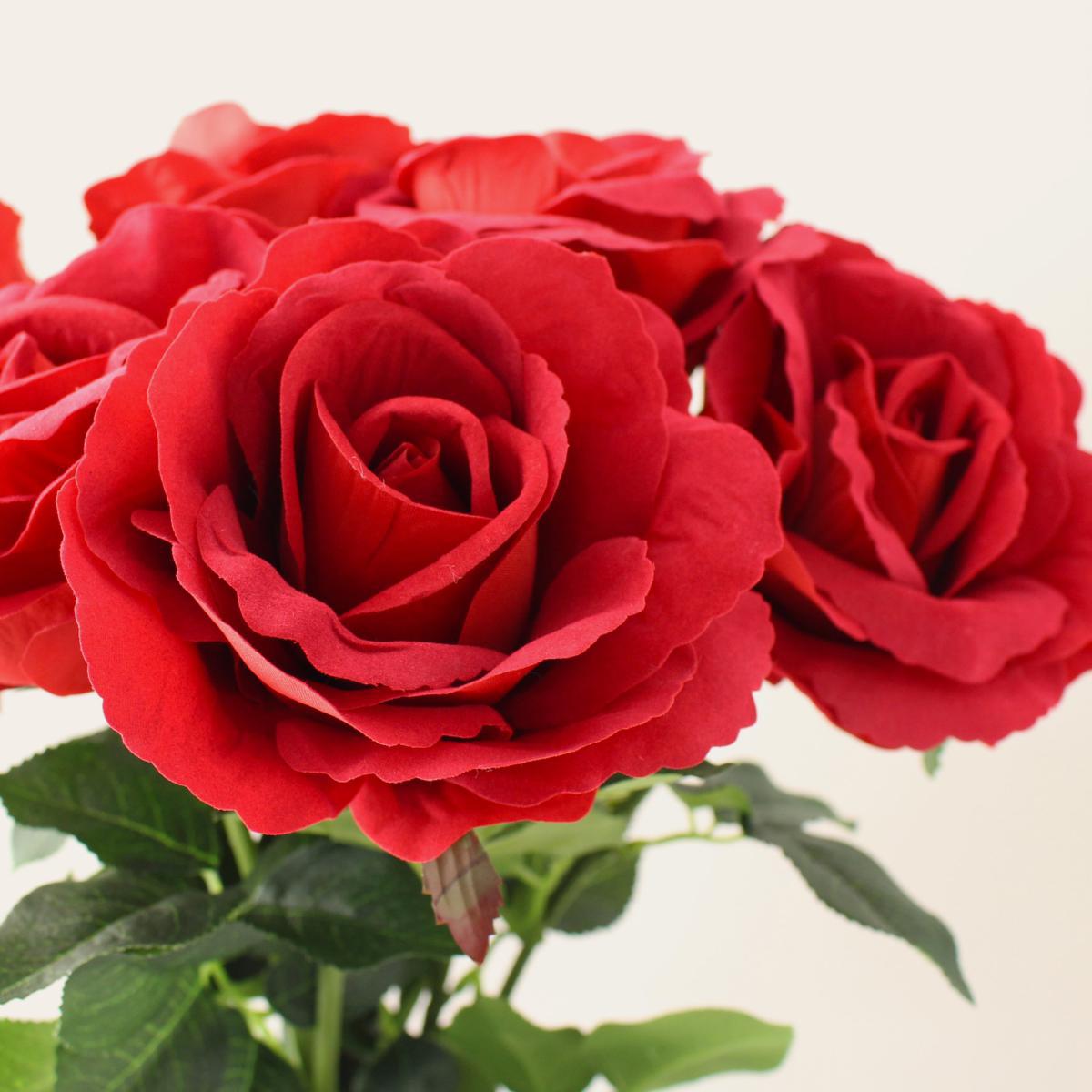 I love these faux roses because they bring a bold burst of colour and elegance without any fuss or maintenance. They work well in both contemporary and traditional interiors, especially in cosy cafés, retail displays, or sleek modern kitchens. To maximise their impact, consider arranging them in a clear glass vase with some simple greenery or foliage for a more natural look, or grouping a few bunches together for a striking centrepiece. Practical styling tips include placing them where natural light can enhance their vibrancy, and using them in spaces where real flowers might not last or be suitable, such as windowless rooms or high-traffic areas. They’re a versatile choice for adding colour and charm year-round without the need for watering or replacement.