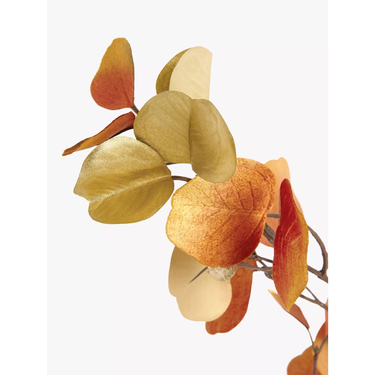 Eucalyptus spray from Floralsilk in hot colours. Place multiple stems in a vase to create a standalone display or combine with other floral stems to create your own bespoke arrangement. The wired stem can be cut or bent to achieve the desired length.