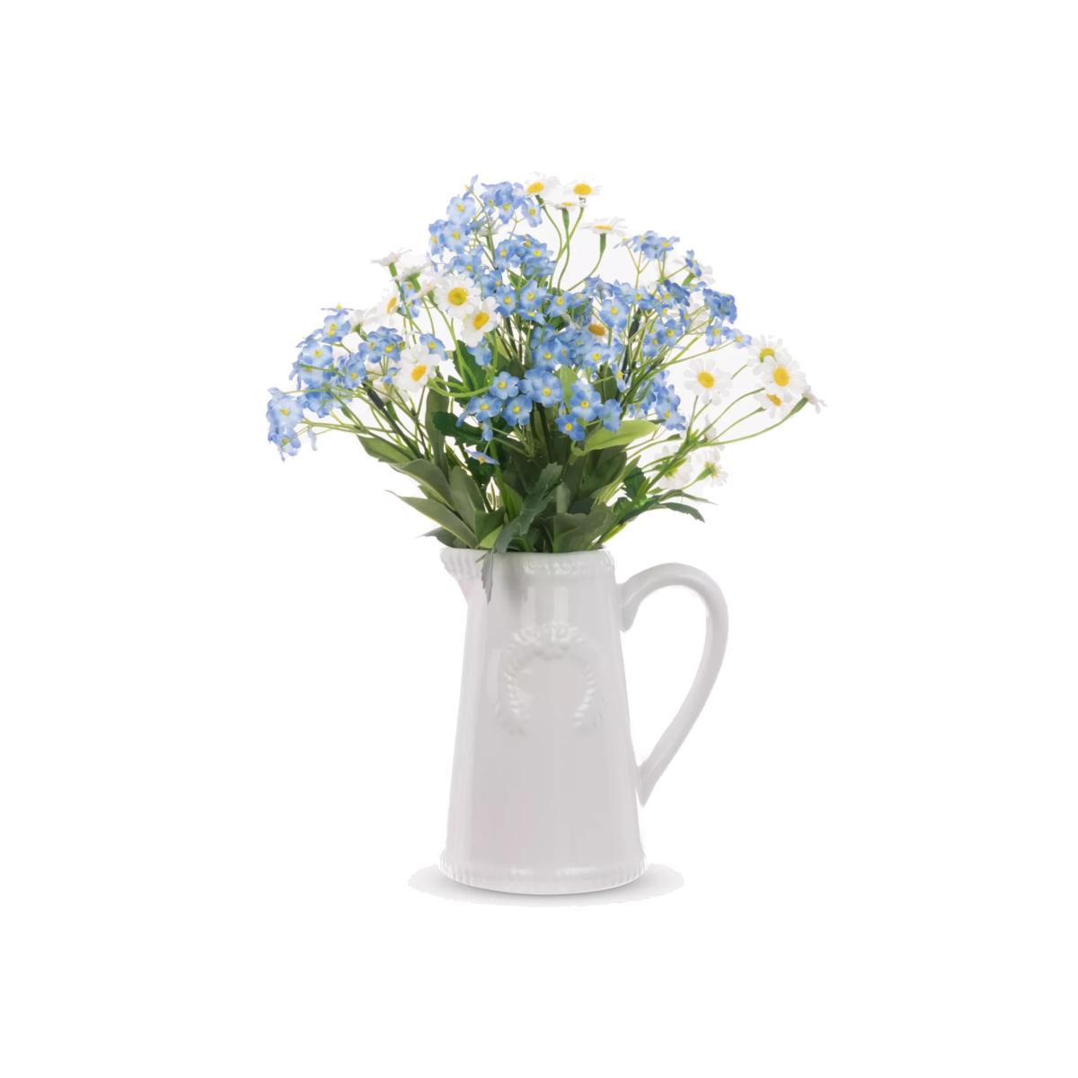 Floralsilk Artificial Forget Me Not & Daisy in a Ceramic Jug, H32cm, Blue/White