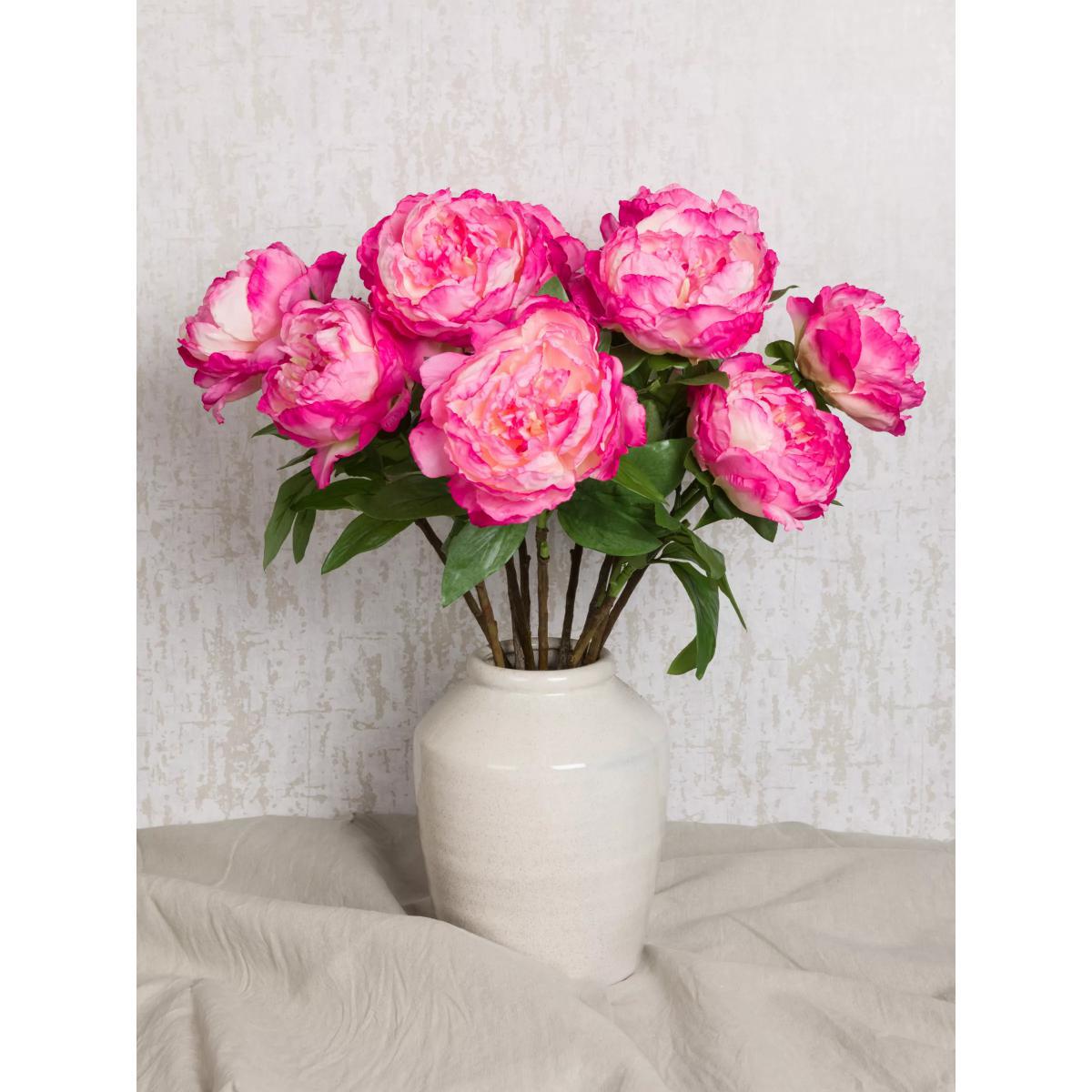 The fabulous peony has ruffled petals in varying hues of pink which perfectly offset its rich green leaves. Its blousy, full head is authentically natural, meaning you can enjoy its beauty all year round. Create your own peony themed arrangement by mixing stems with natural green foliage and complementary floral fillers. The wire stem can be cut or bent to achieve the desired length.