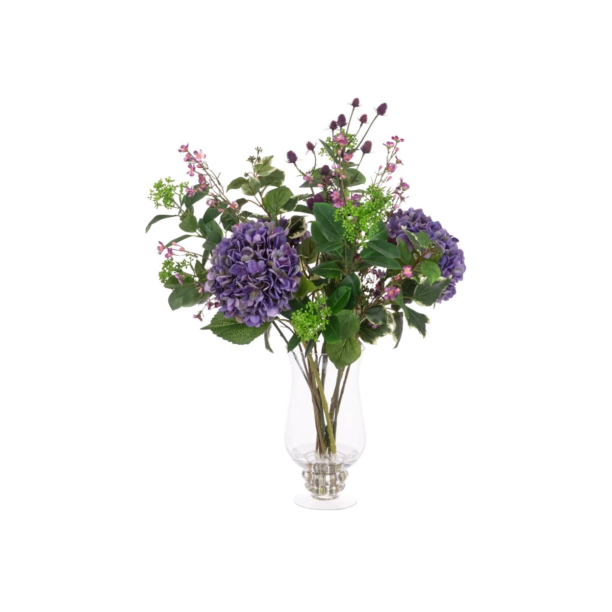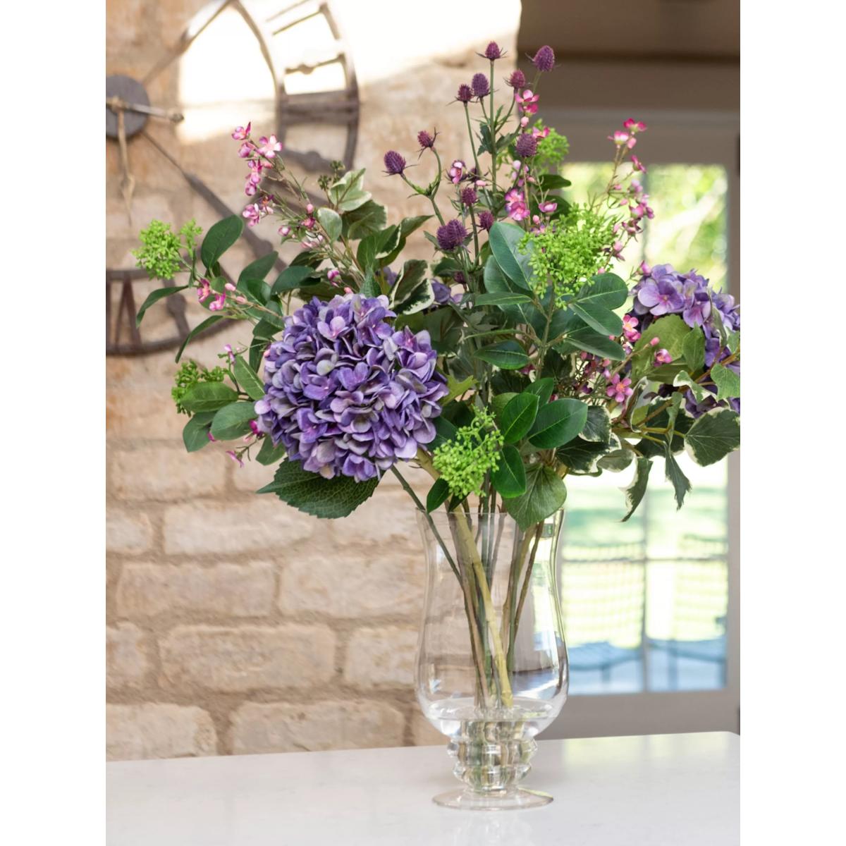 Floralsilk Artificial Hydrangea & Wax Flower Bouquet in Glass Vase, Purple/Pink
