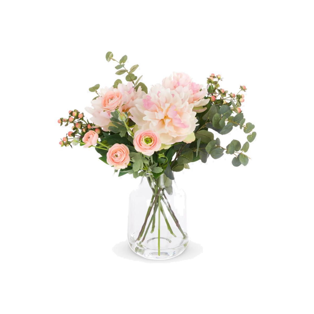 Floralsilk Artificial Peony Ranuculus & Hypericum in Glass Vase