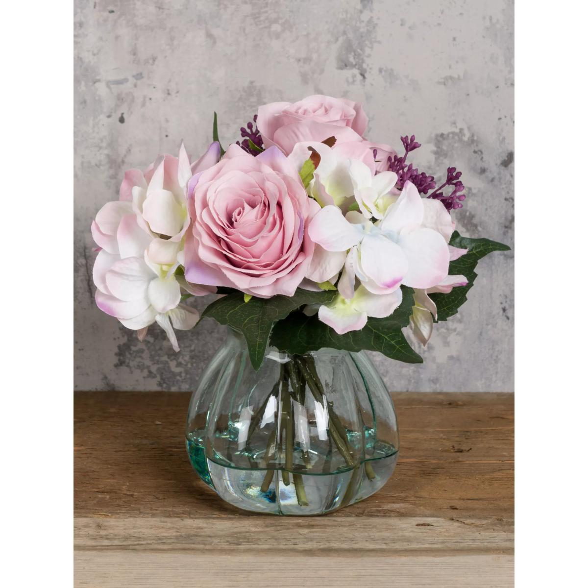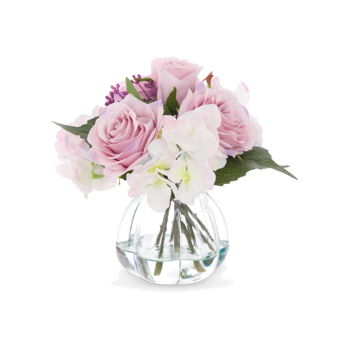 Floralsilk Artificial Rose & Hydrangea in Curve Vase