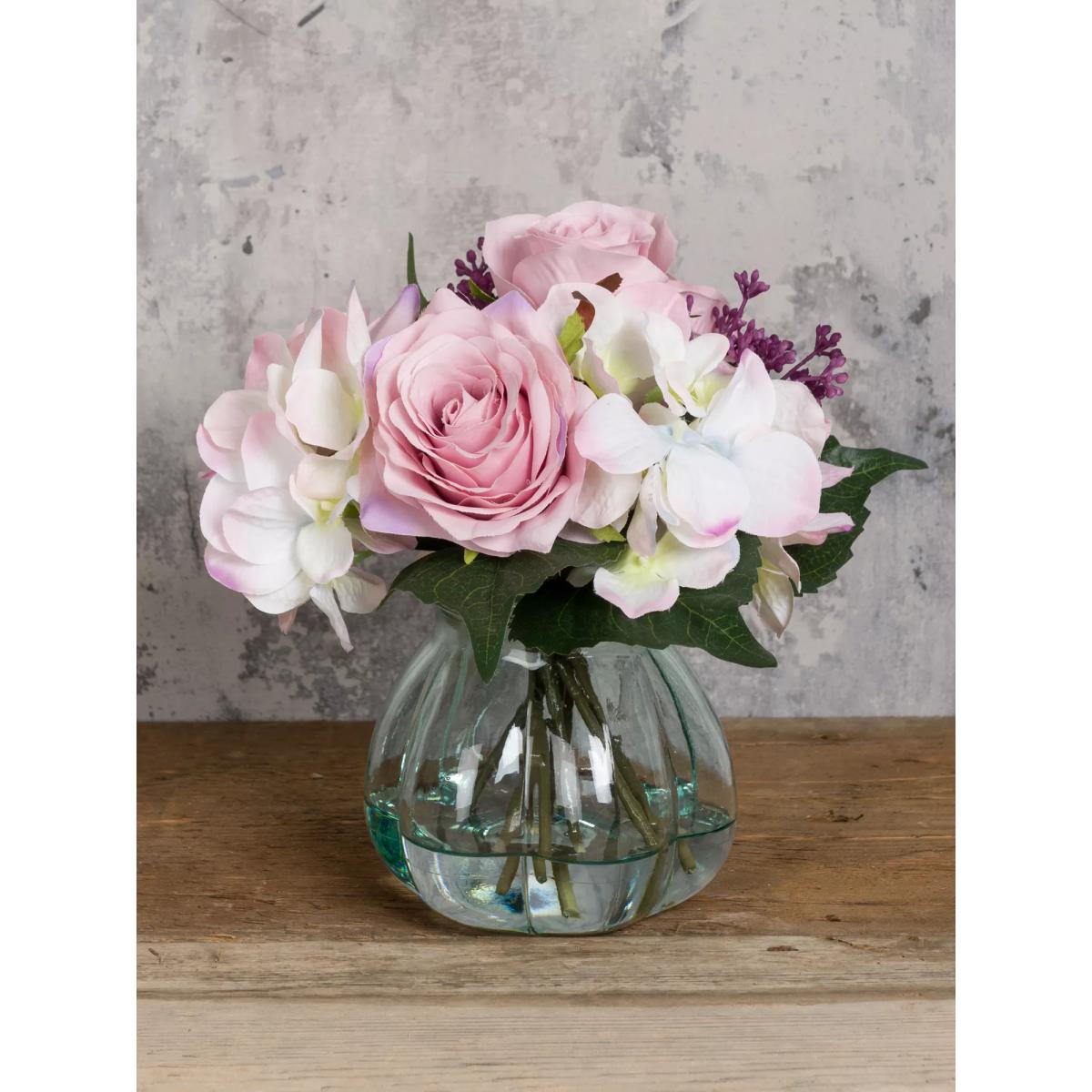 This pretty arrangement features a lovely mix of floral stems, set in a recycled glass vase. With authentic detail and colouring, this charming piece would make a delightful gift for someone special. This arrangement will look stunning on any surface. The stems are set in clear resin for a ready-made arrangement.