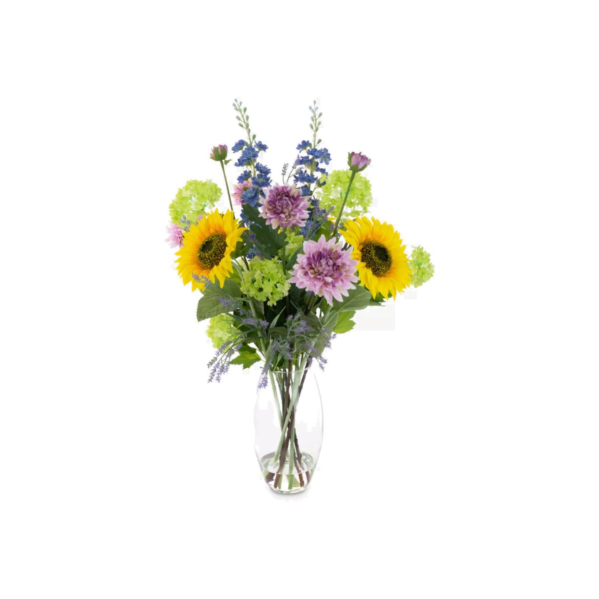 Floralsilk Artificial Sunflower Mix in Glass Vase
