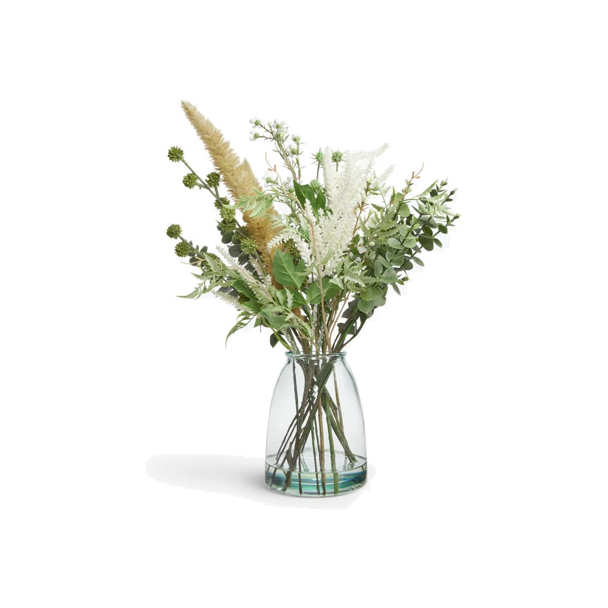Delightfully realistic and at their peak all year round. Made in the UK by Floralsilk, artificial wild thistle and meadow grass mix in a glass vase. The stems are set in resin creating a ready-made arrangement for any interior or making a lovely gift for someone special.