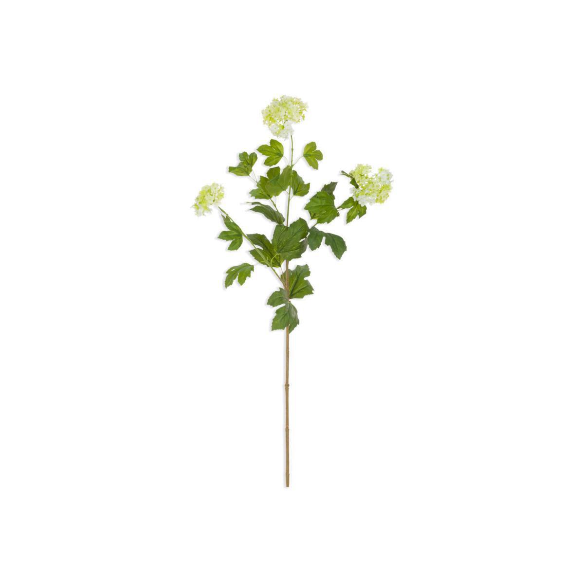 This delightful viburnum stem features globe-shaped flower clusters in tonal green shades and verdant green leaves with toothed edges. A truly lifelike stem and a perfect choice for bringing the outside into your home. Group multiple stems together in a tall glass vase to display their natural beauty. The wired stem can be cut or bent to achieve the desired length.