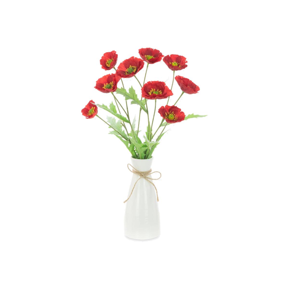 Delightfully realistic, this floral arrangement of artificial poppies will remain in bloom all year round. A gorgeous feature for any interior or a lovely gift for someone special the bundle sits in a ceramic vase with string ribbon.