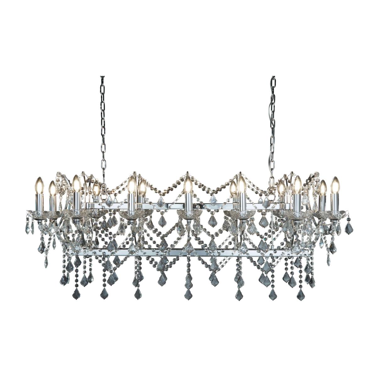 Make a statement using this 14 light Florence chrome pendant bar with stunning clear crystal adornments. The 14 lights are adjacent to each other, and the visible bulbs create an illuminating glow: great for adding brightness to your living room, hallways or dining room. Impressive clear crystal