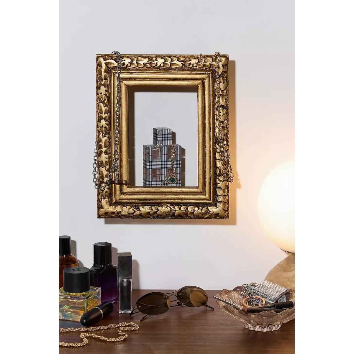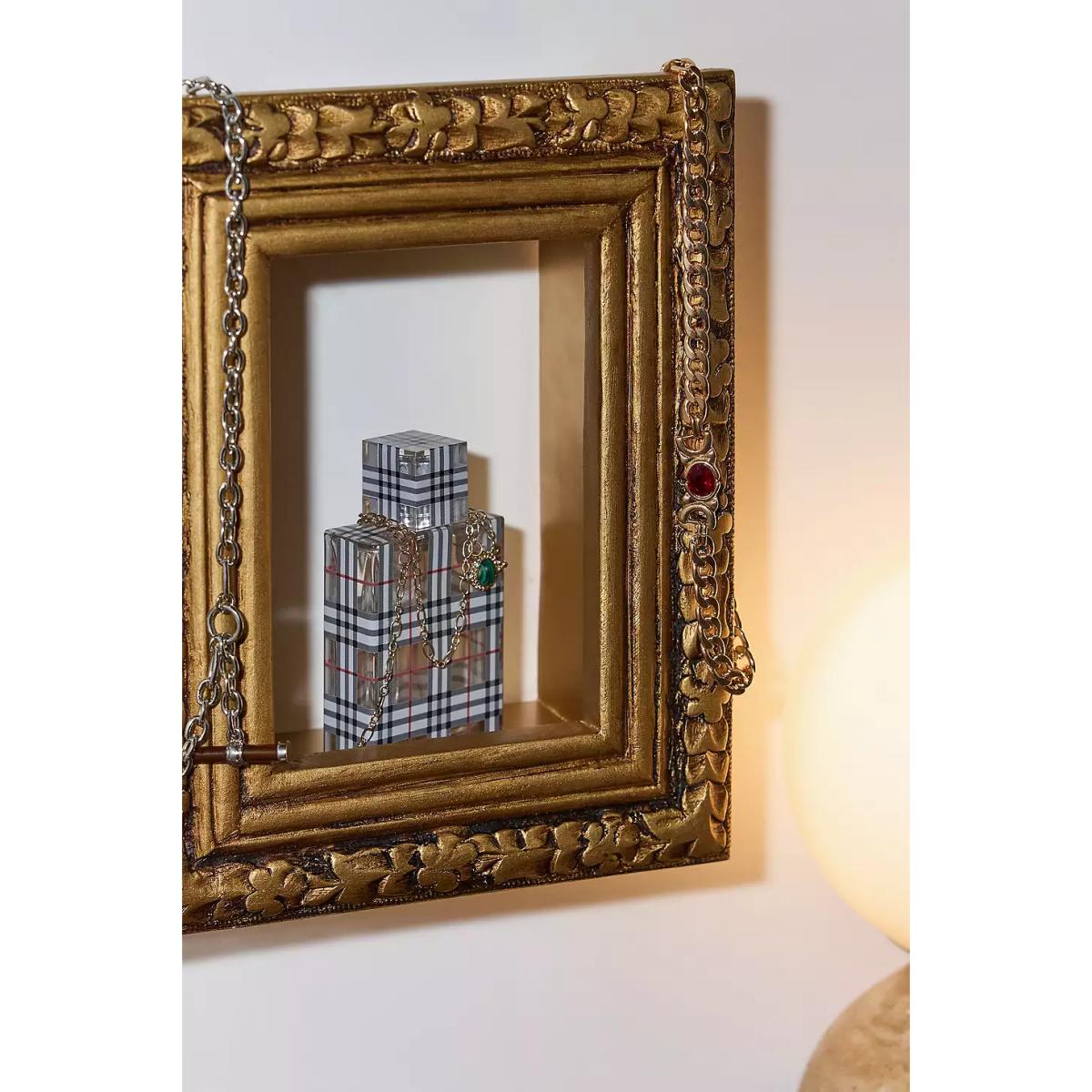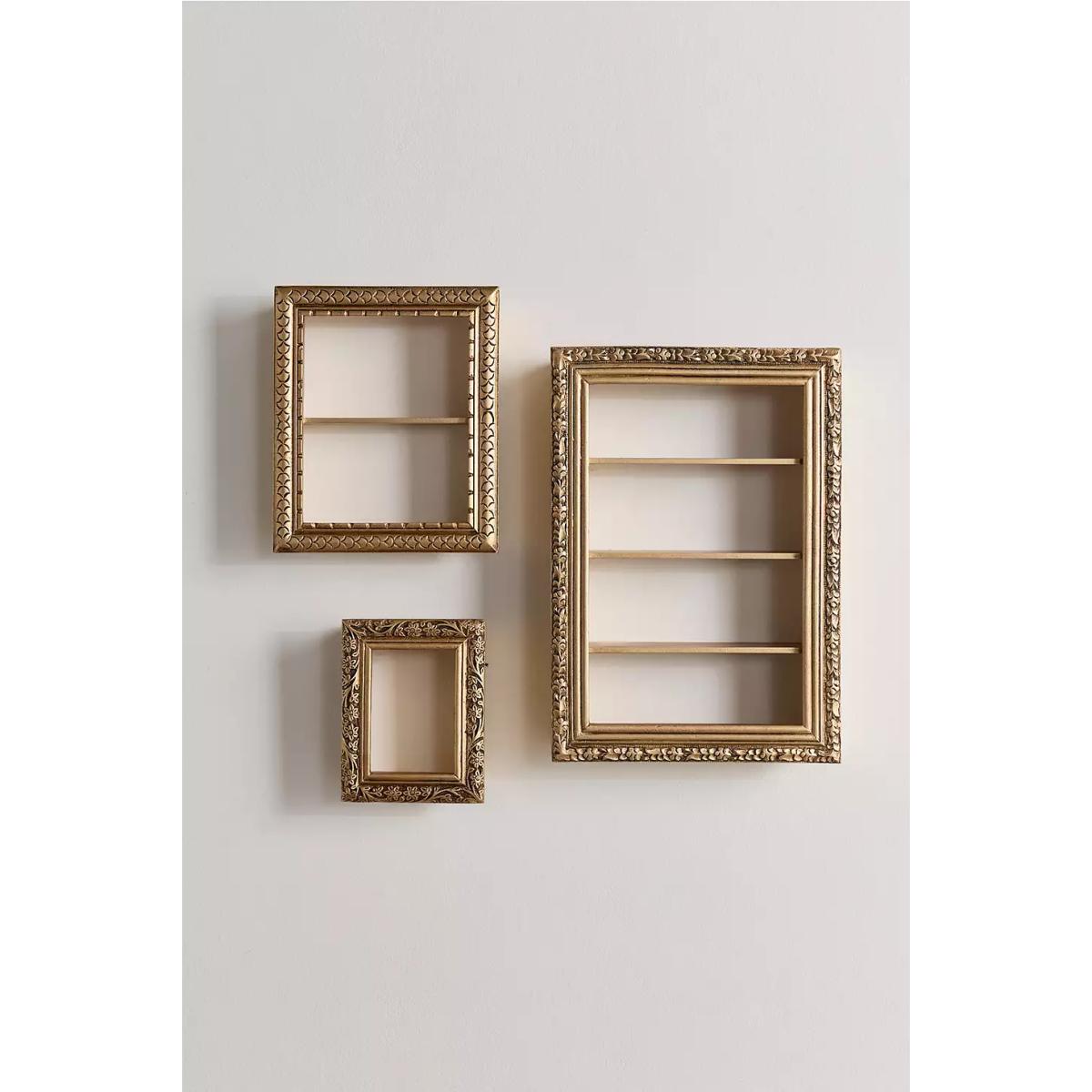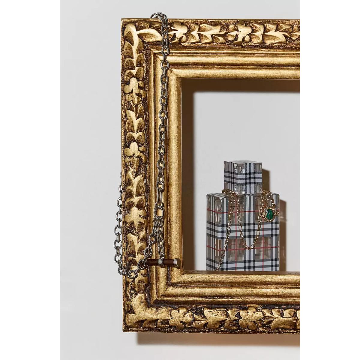 Add an ornate touch to your space with this gold-tone photo frame-style shelf. Crafted from wood with a 15cm shelf, perfect for displaying perfumes and small trinkets. **Content + Care** \- 80% Mango Wood, 20% MDF \- Wipe clean **Size** \- 17cm x 18.75cm x 9cm