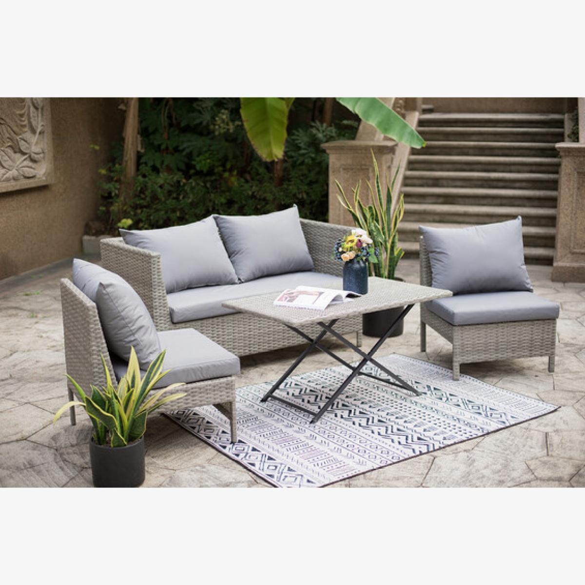 Lounge around under the sunny sky on this Florence 4 Piece Conversation Set. Featuring a two-seater sofa and two single chairs, along with a sweet table, this set is perfect for summer coffees or light lunches with your friends. Bringing all the charm of al fresco dining, each piece in this set features polyethene rattan in a light, neutral colour, which will bring a calming vibe to your garden. The chairs are set with plush cushions to ensure comfort as you relax, while a sturdy iron frame keeps the entire set robust.